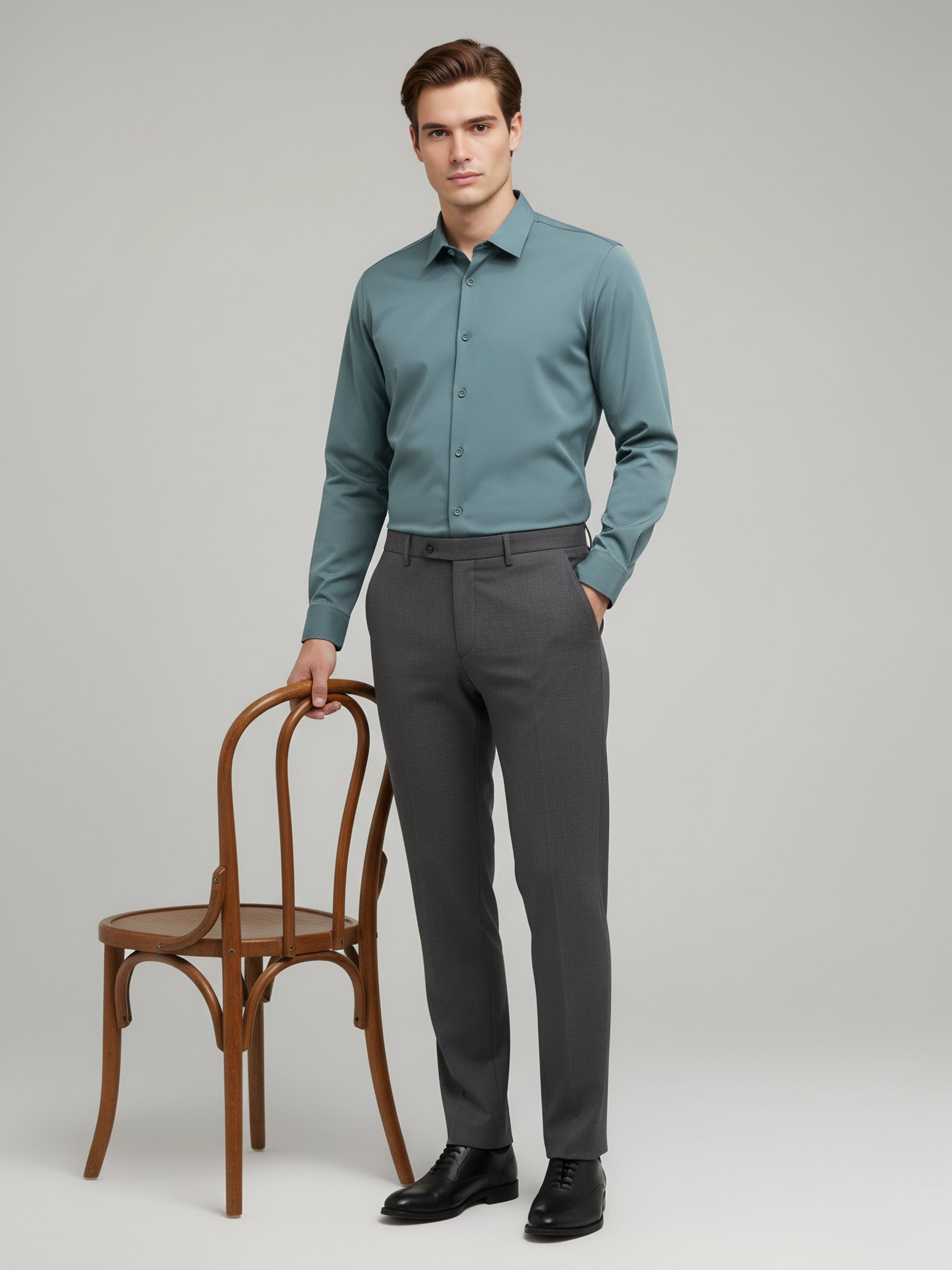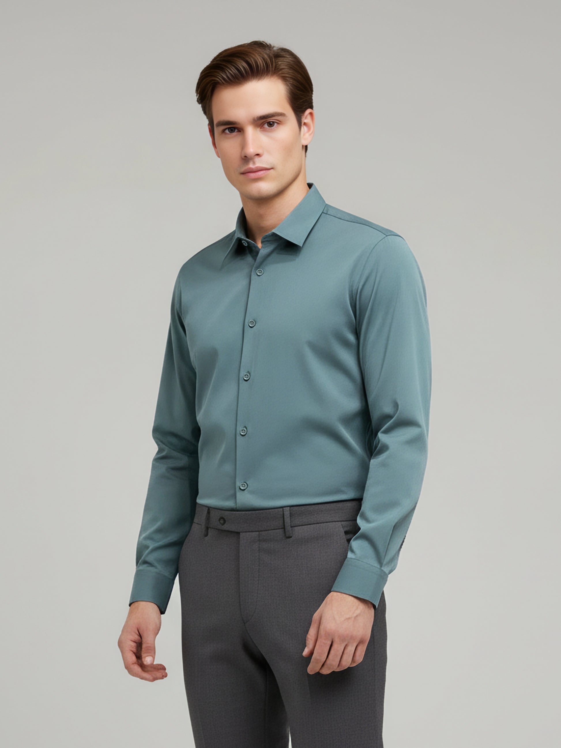 Discover the stylish Celio Men Green Solid Regular Fit Shirt, crafted from premium nylon. Perfect for casual occasions, it features long sleeves and a trendy green hue. Disclaimer: All other items in the image are only for display purposes and will not be a part of the delivery content. Product colour may slightly vary due to photographic lighting sources. Country of Origin - India.