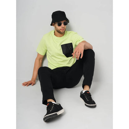 Celio* Solid Relaxed Fit Cotton-Blend Green T-Shirt