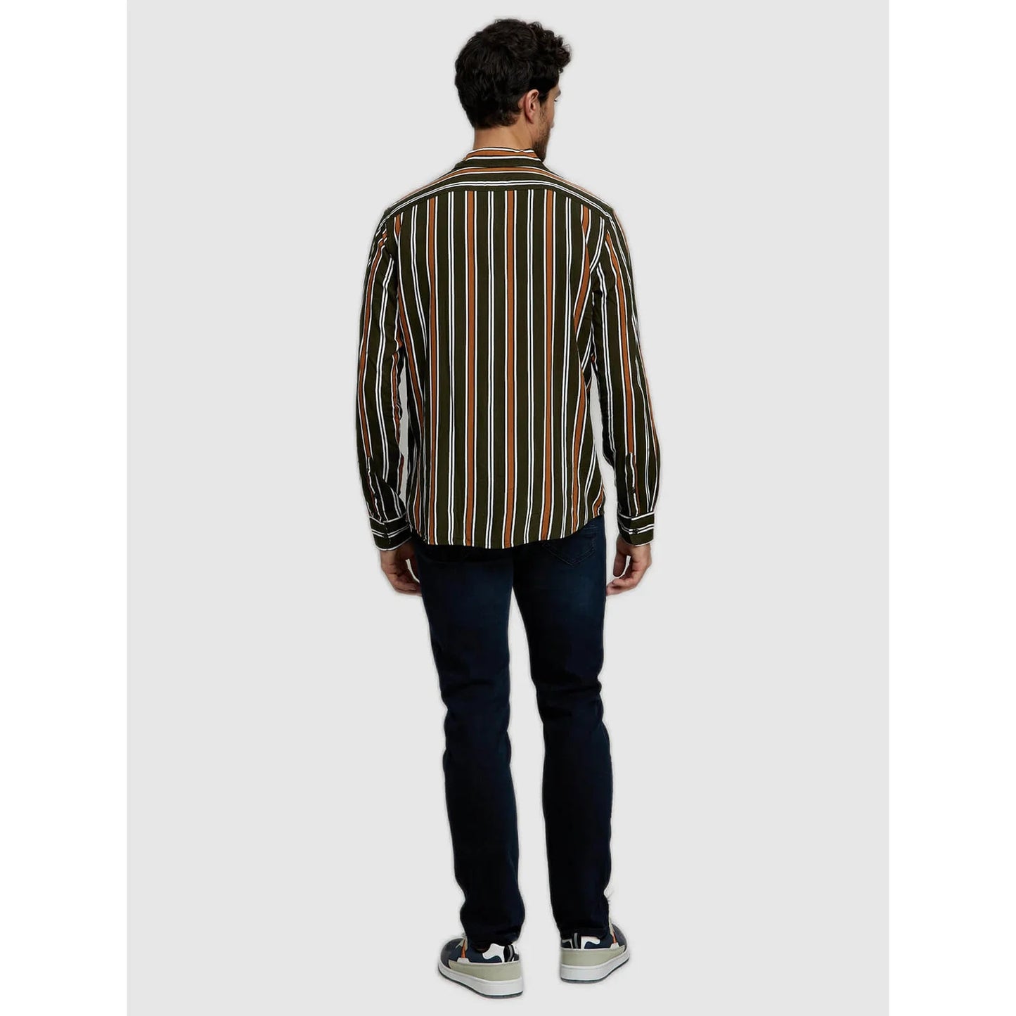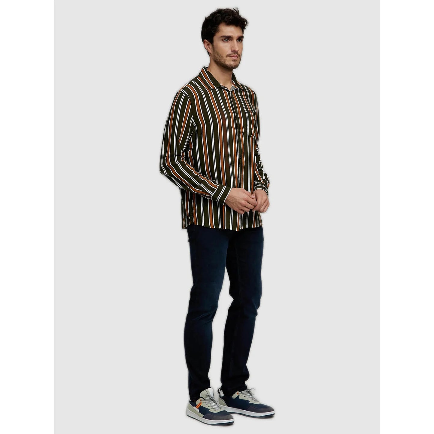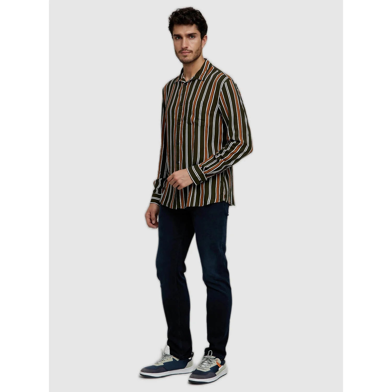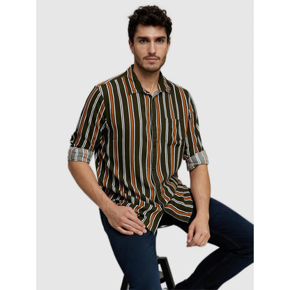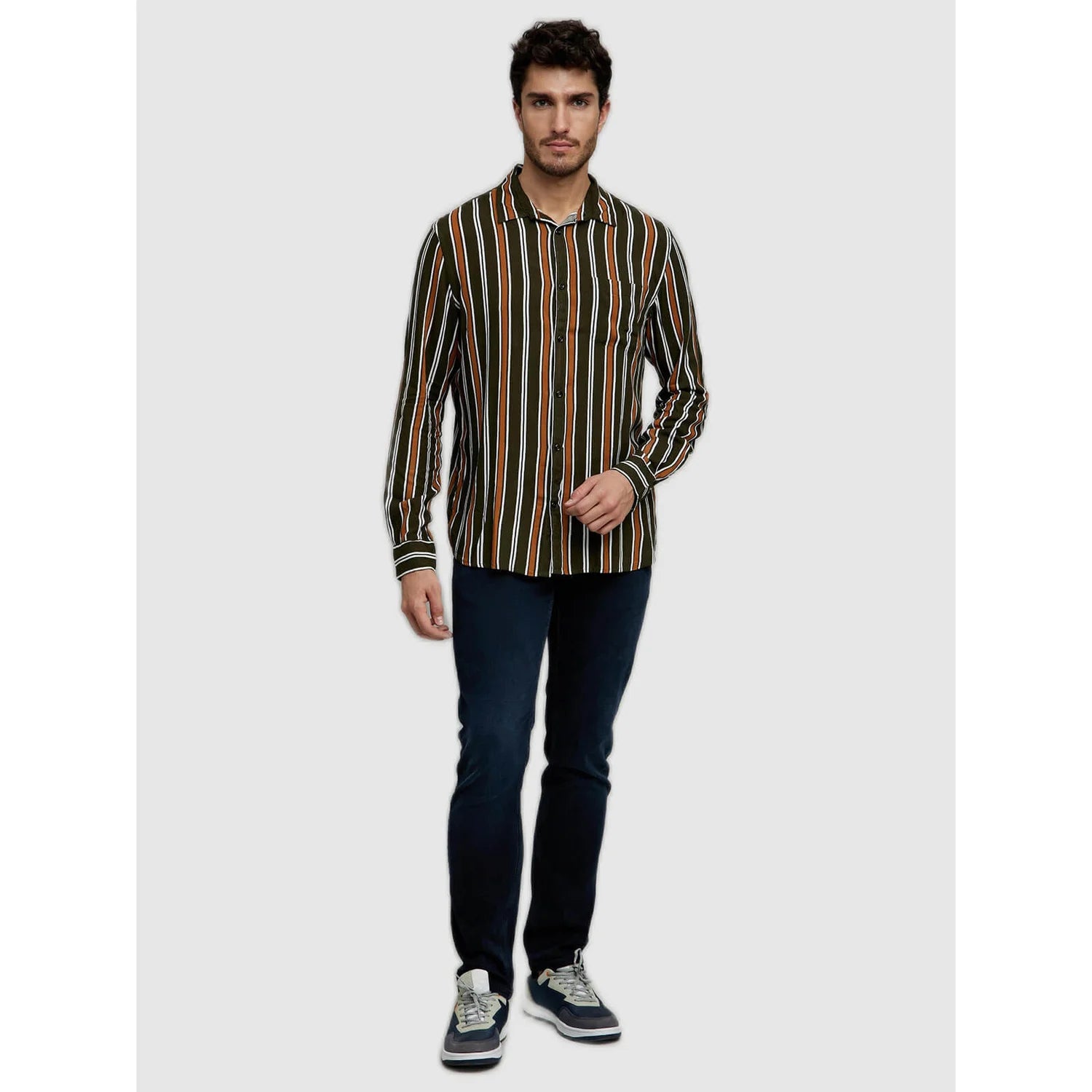 Shop Celio Men's casual shirt in green with black stripes. Made of viscose, it features long sleeves, perfect for any casual occasion. Disclaimer: All other items in the image are only for display purposes and will not be a part of the delivery content. Product colour may slightly vary due to photographic lighting sources. Country of Origin - India.