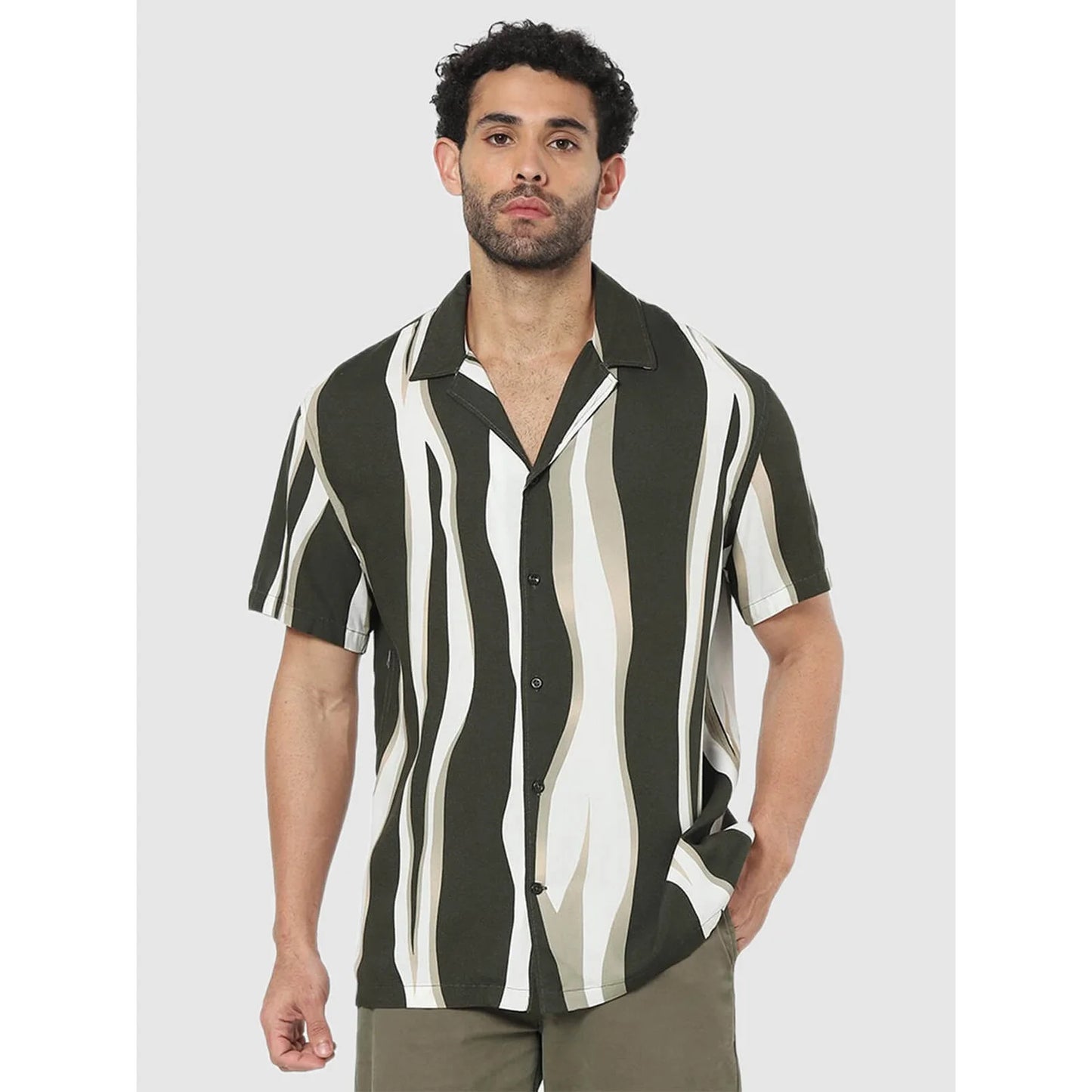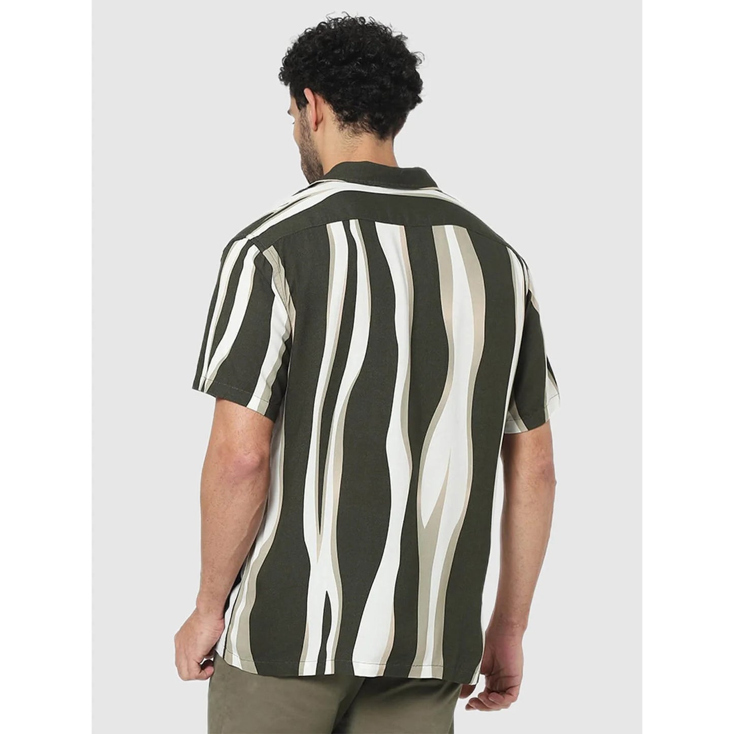 The Celio Olive Vertical-Stripes Regular Fit Shirt for men features a stylish green design. Made from soft viscose, it’s perfect for casual occasions with half sleeves. Disclaimer: All other items in the image are only for display purposes and will not be a part of the delivery content. Product colour may slightly vary due to photographic lighting sources. Country of Origin - India.