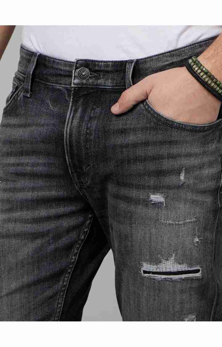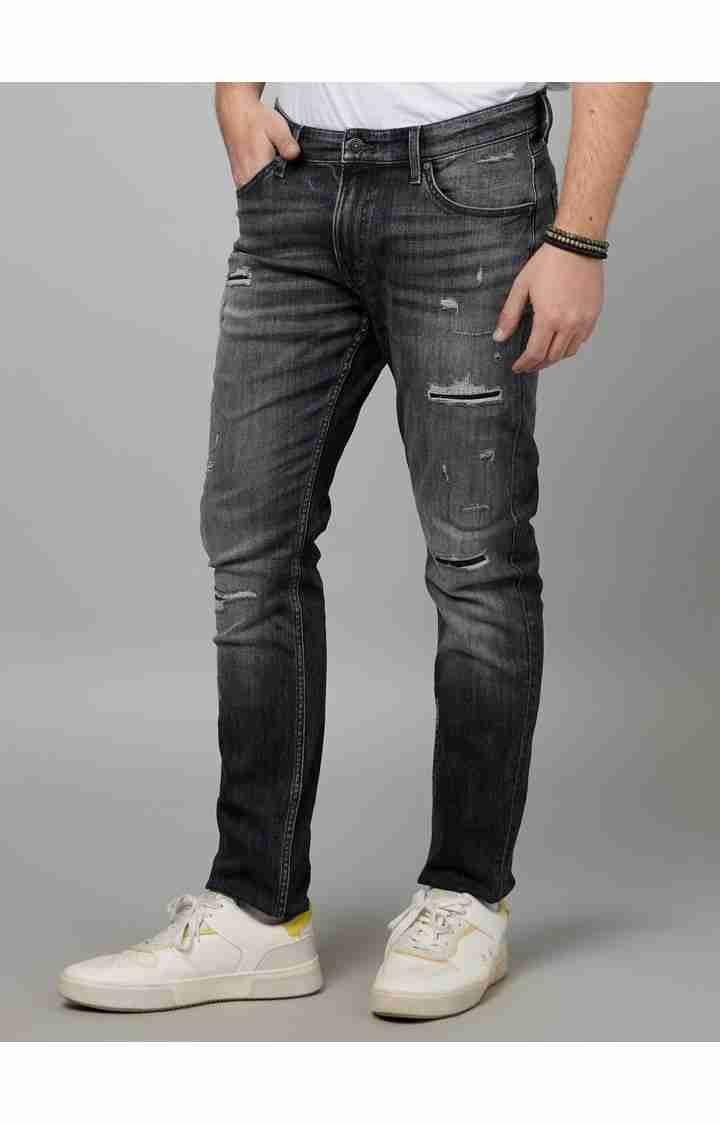 Stylish Celio Grey Distress Denim Jean for men, crafted from a comfortable cotton blend. Perfect for casual occasions, featuring a modern design in grey color. Disclaimer: All other items in the image are only for display purposes and will not be a part of the delivery content. Product colour may slightly vary due to photographic lighting sources. Country of Origin - India.