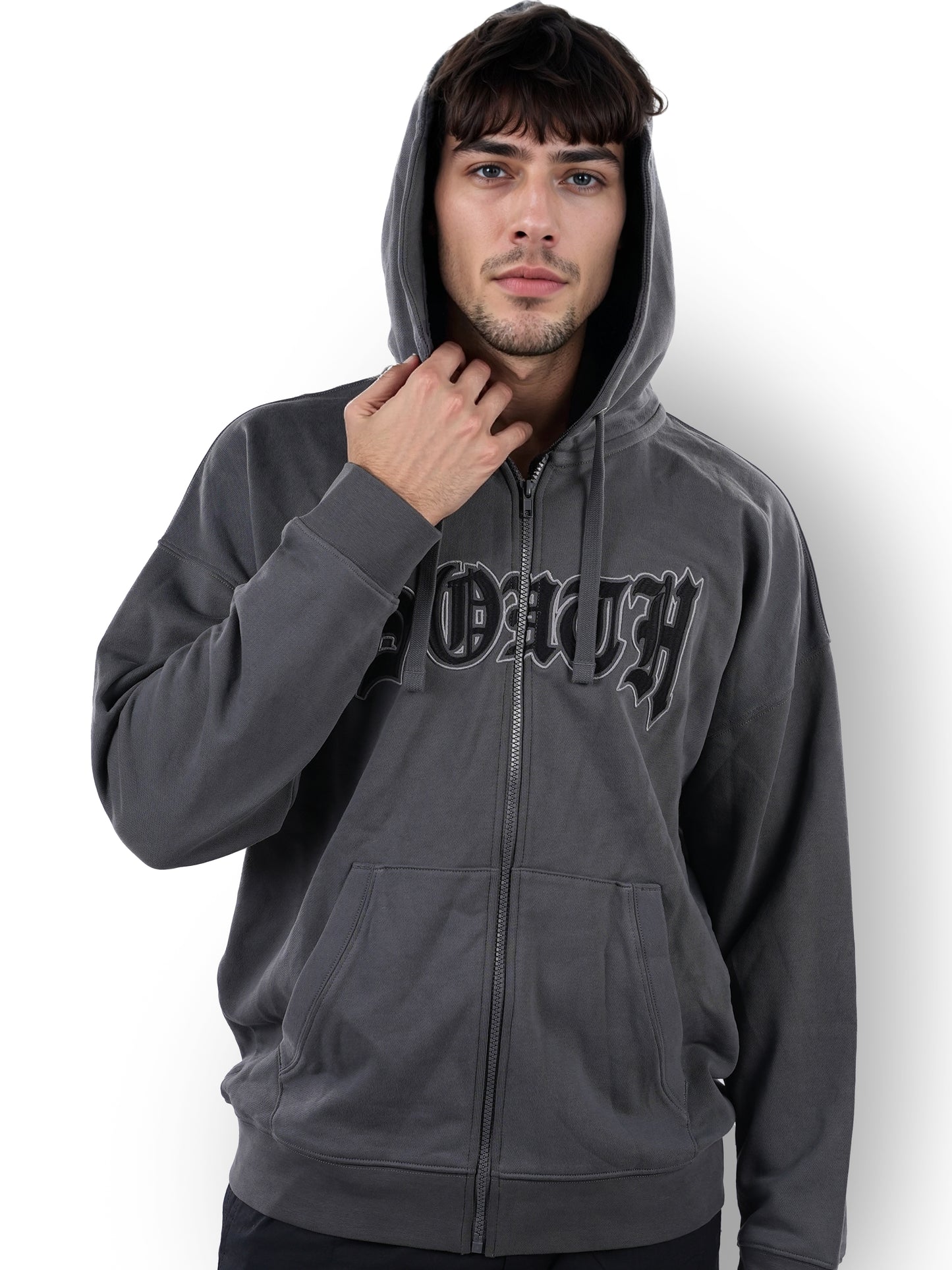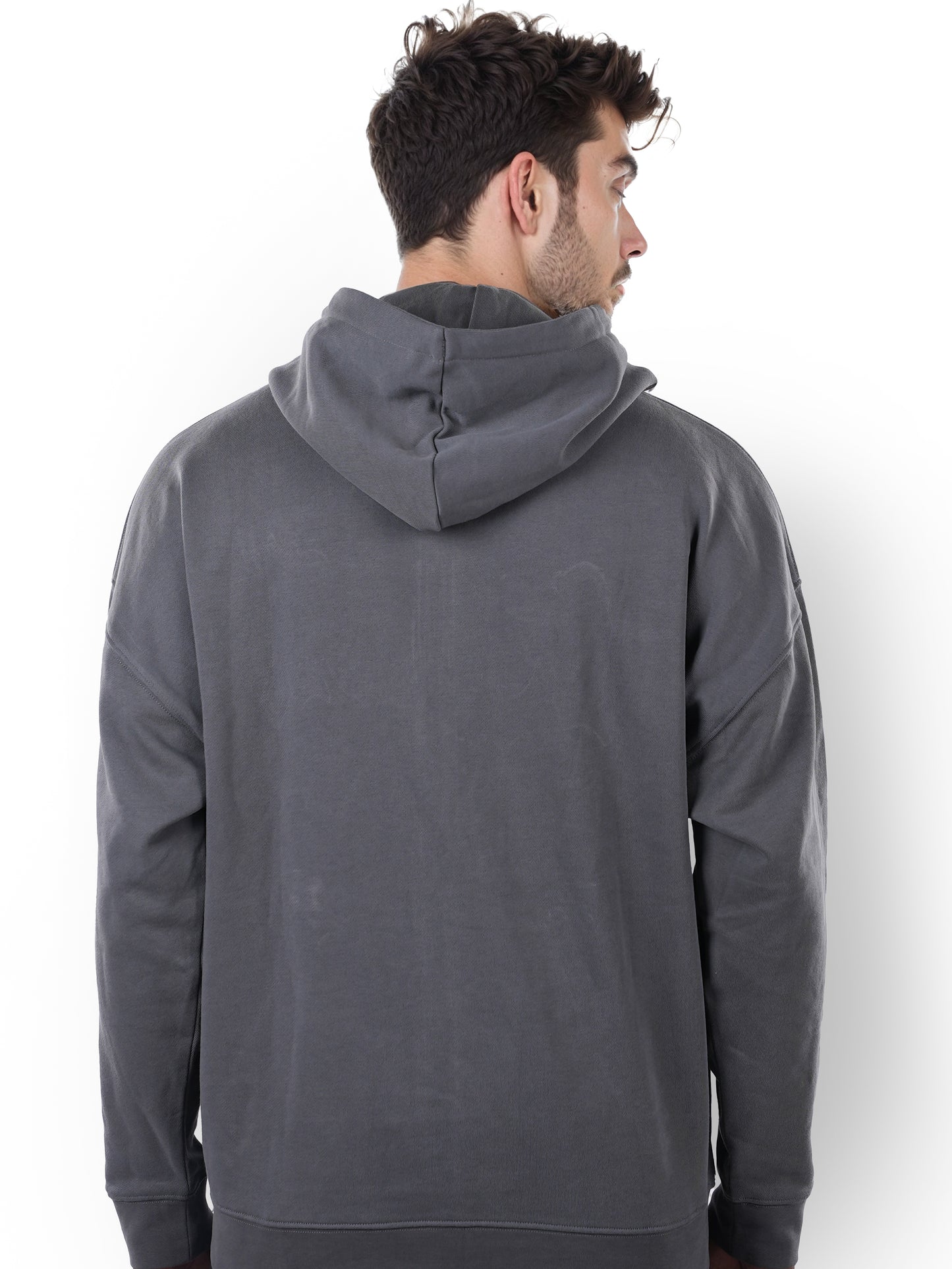 Men's grey hooded sweatshirt by Celio, crafted from comfortable cotton. Features long sleeves and a stylish print, perfect for casual occasions. Disclaimer: All other items in the image are only for display purposes and will not be a part of the delivery content. Product colour may slightly vary due to photographic lighting sources. Country of Origin - India.