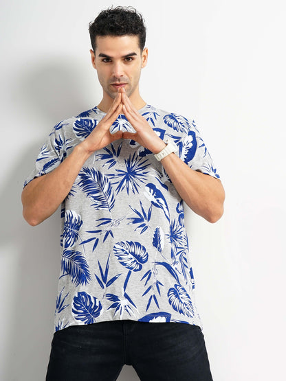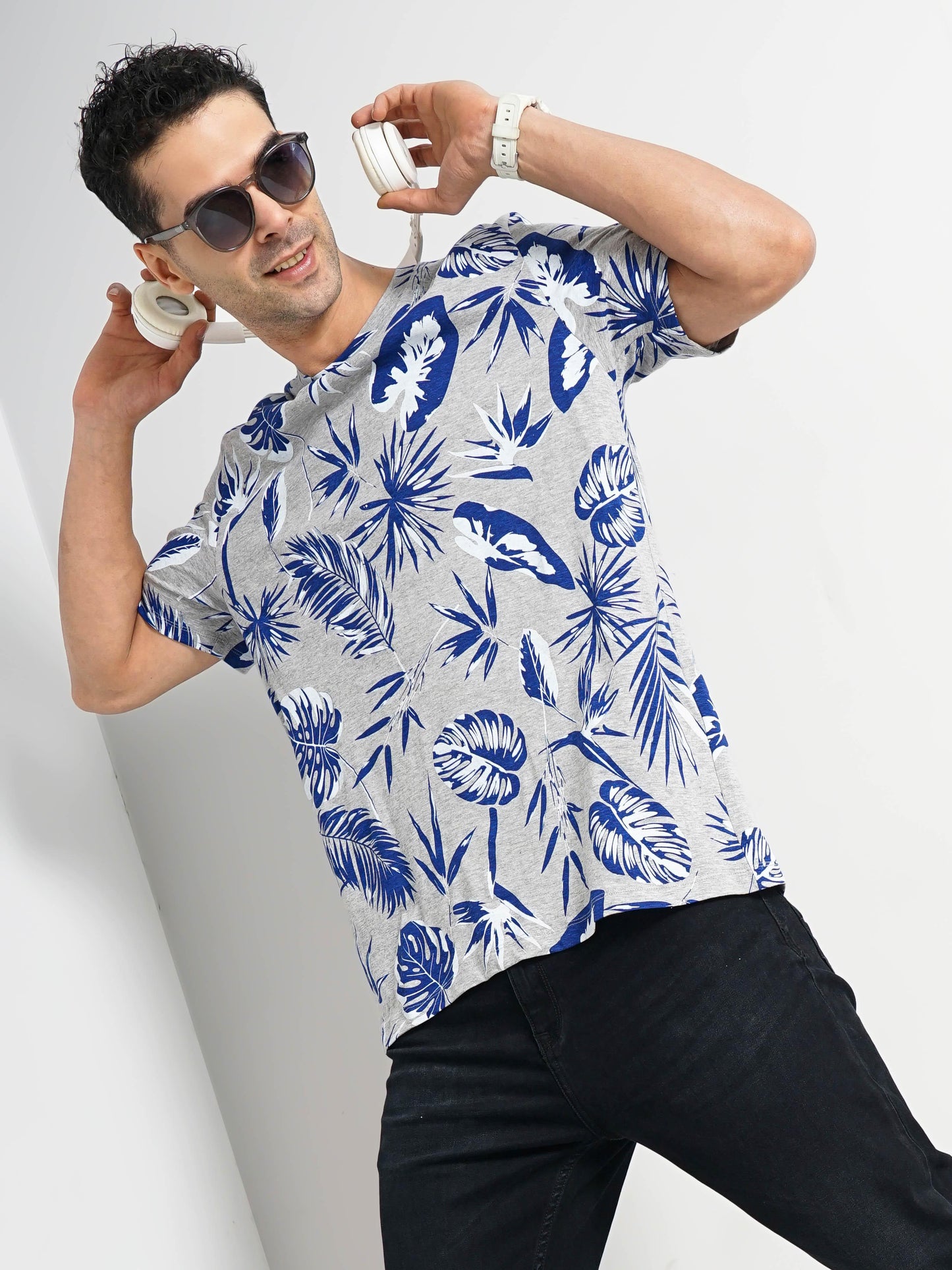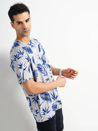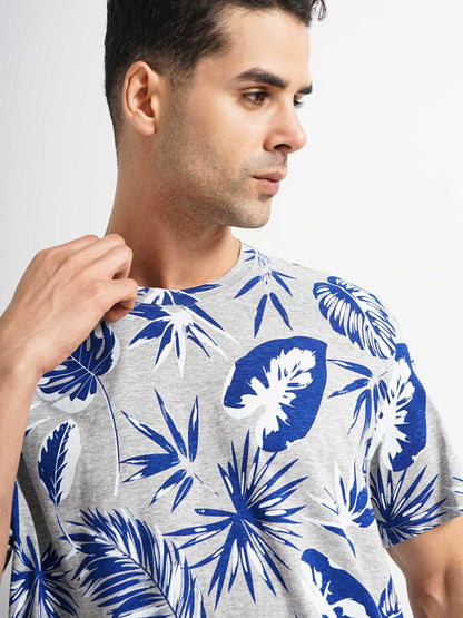 Celio* Printed Regular Fit Cotton Grey T-Shirt