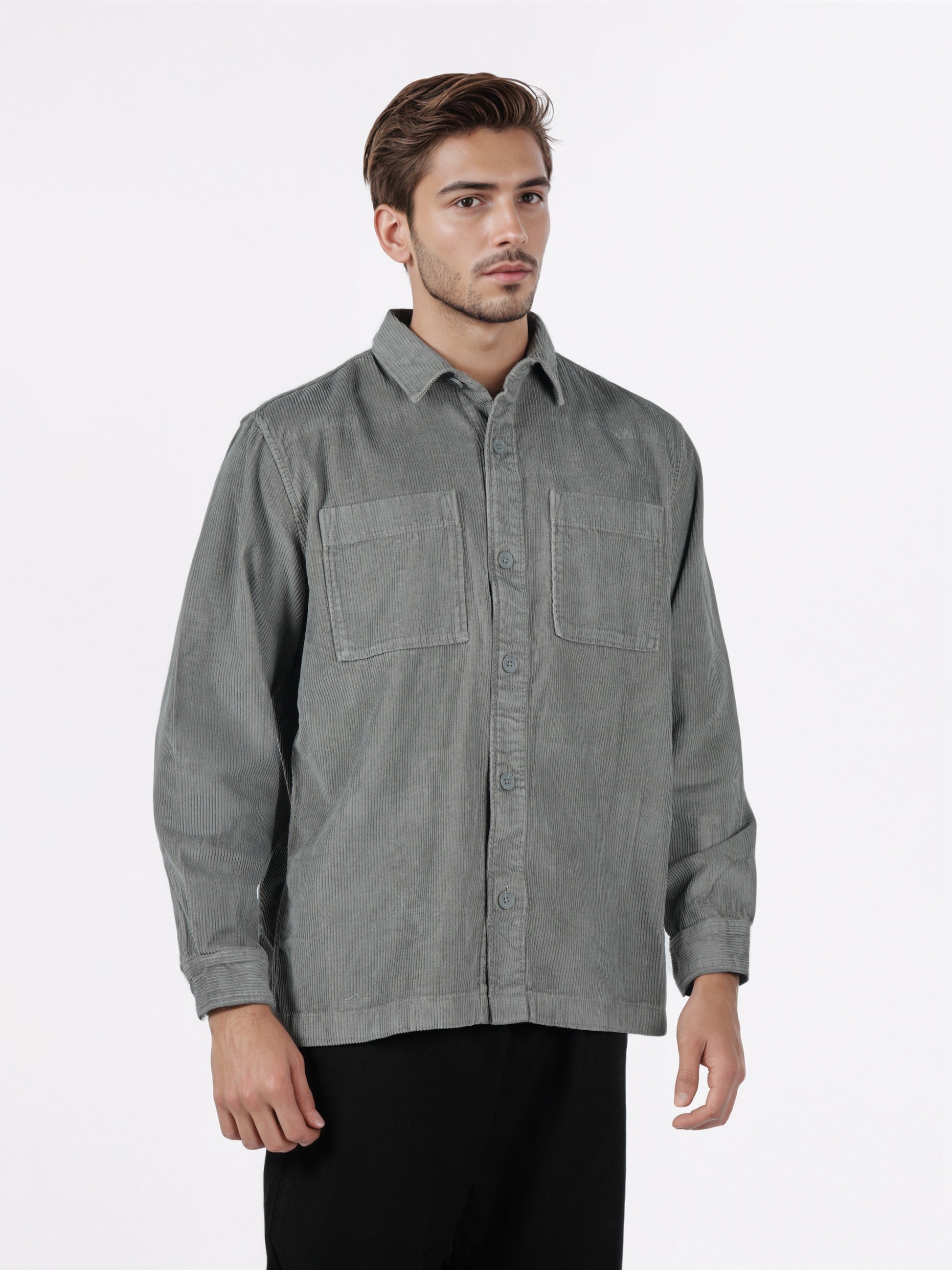 Celio* Men Grey Solid Overshirt Cotton Shirts