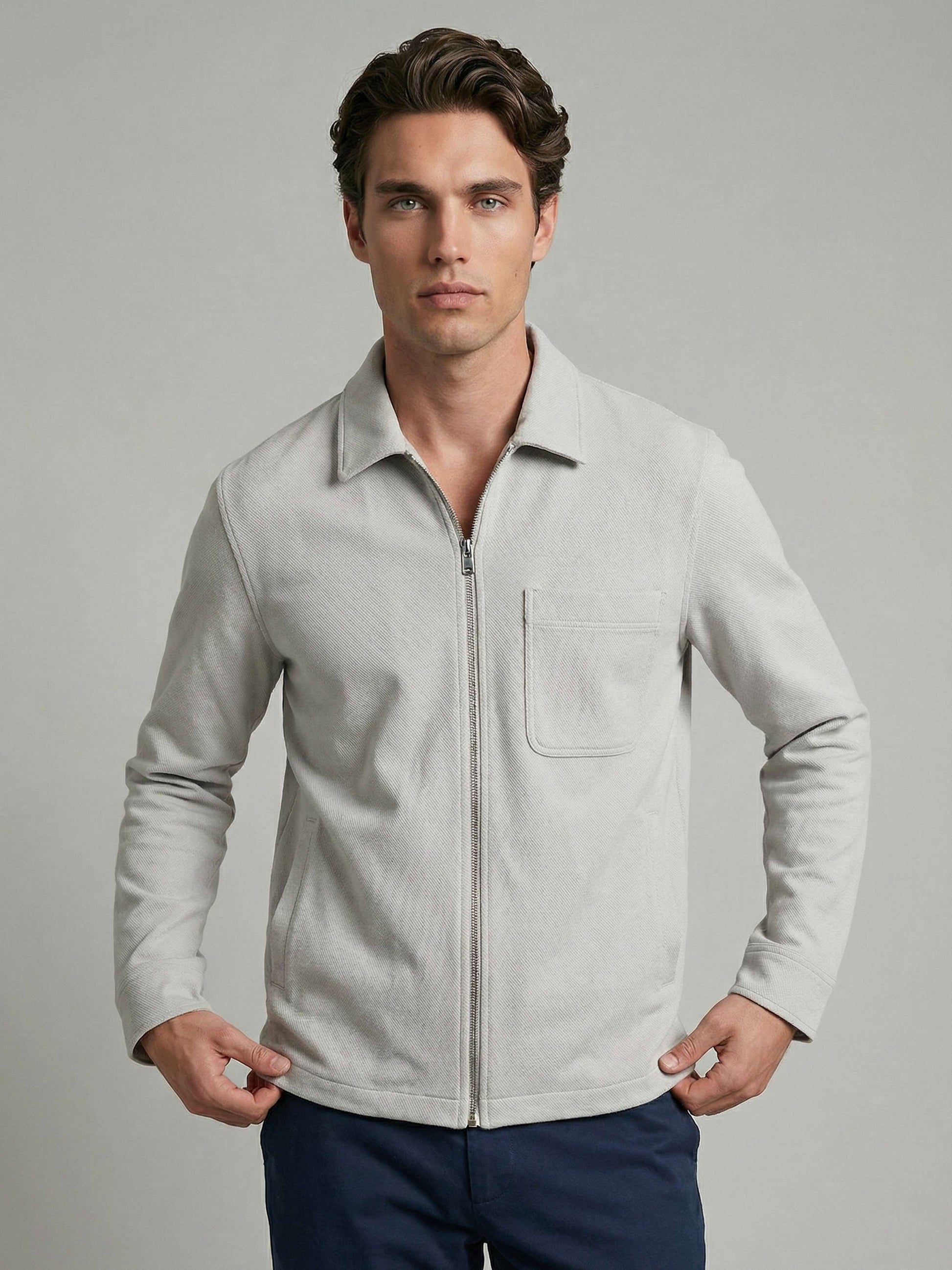 Men's grey cotton overshirt by Celio, perfect for casual occasions. Features long sleeves for a comfortable and stylish fit. Disclaimer: All other items in the image are only for display purposes and will not be a part of the delivery content. Product colour may slightly vary due to photographic lighting sources. Country of Origin - India.