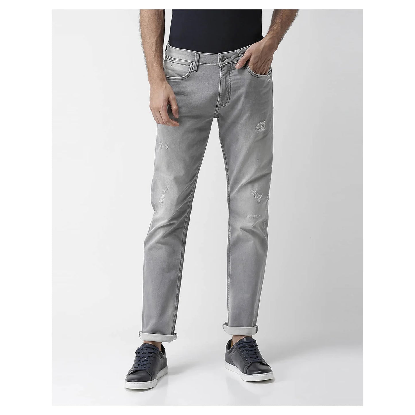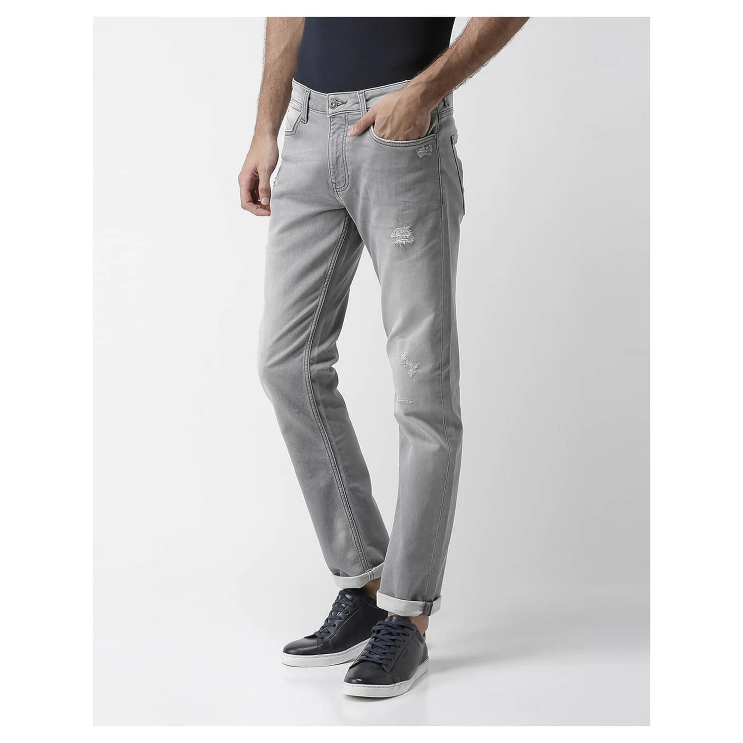 Elevate your casual style with Celio Men's Grey Cotton Solid Ripped Jean. Made from comfortable cotton, these Jean are perfect for everyday wear, blending fashion with functionality. Disclaimer: All other items in the image are only for display purposes and will not be a part of the delivery content. Product colour may slightly vary due to photographic lighting sources. Country of Origin - India.