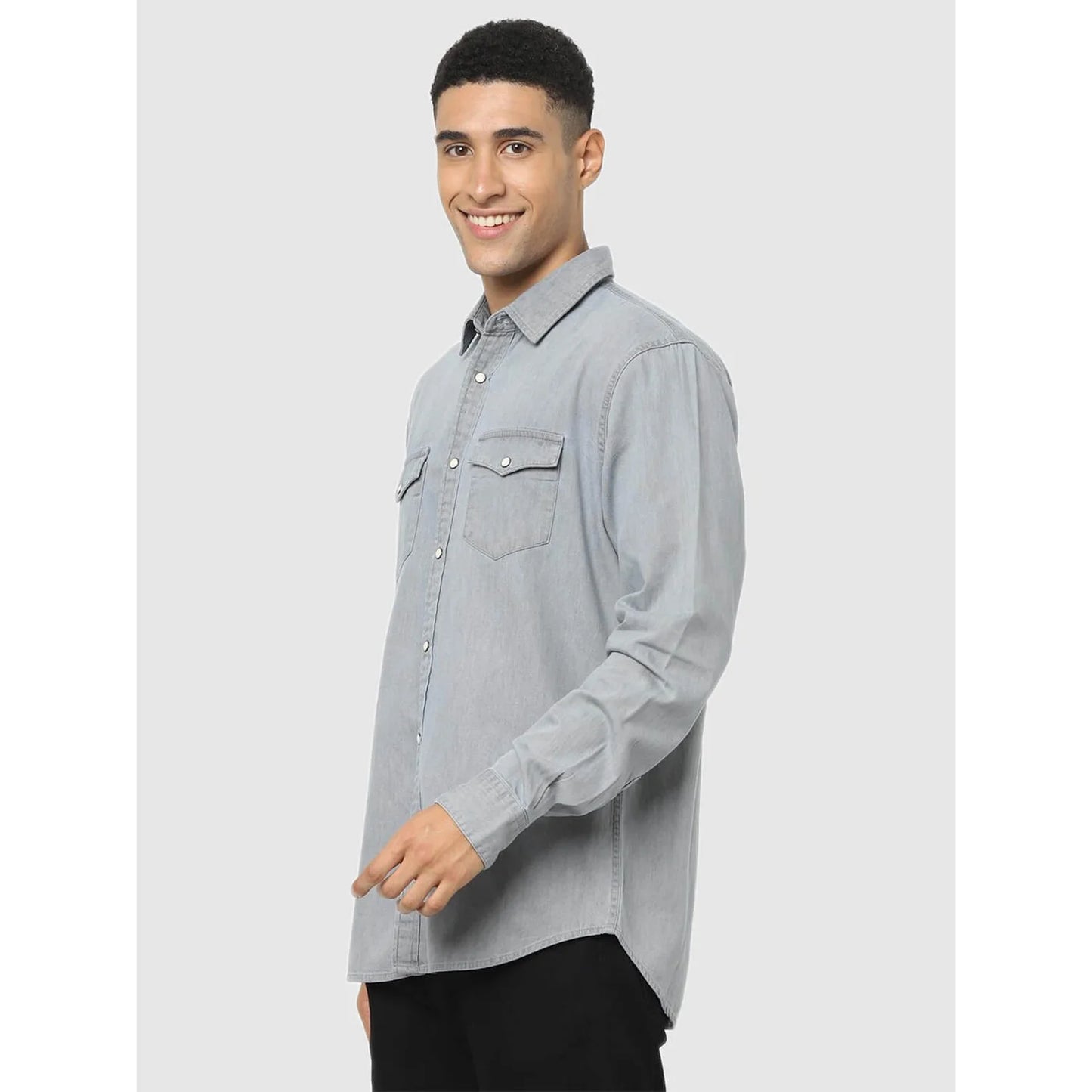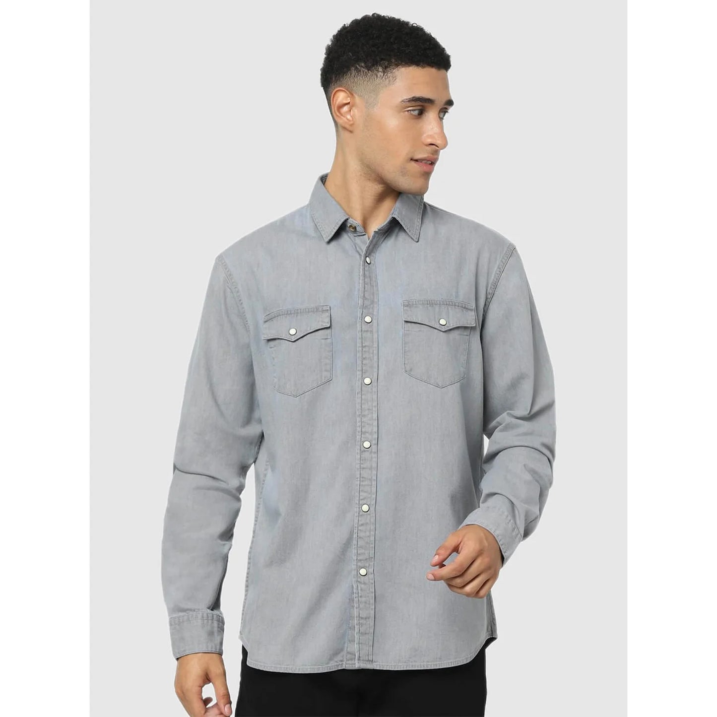 Shop the Celio Grey Solid Regular Fit Shirt for men, crafted from comfortable cotton. Ideal for casual occasions, it features long sleeves and a stylish grey hue. Disclaimer: All other items in the image are only for display purposes and will not be a part of the delivery content. Product colour may slightly vary due to photographic lighting sources. Country of Origin - India.