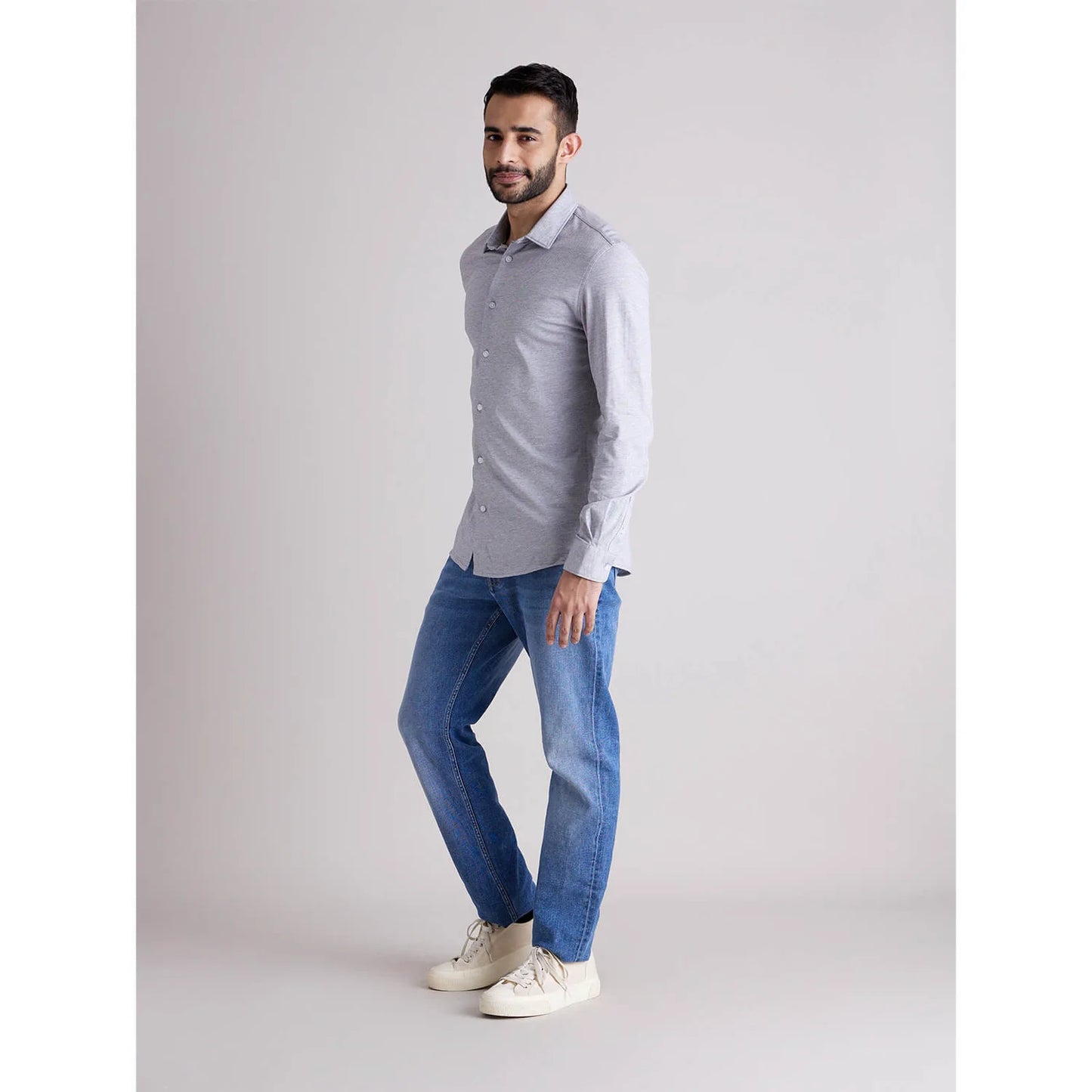 Celio* Solid Regular Fit Cotton Grey Shirt