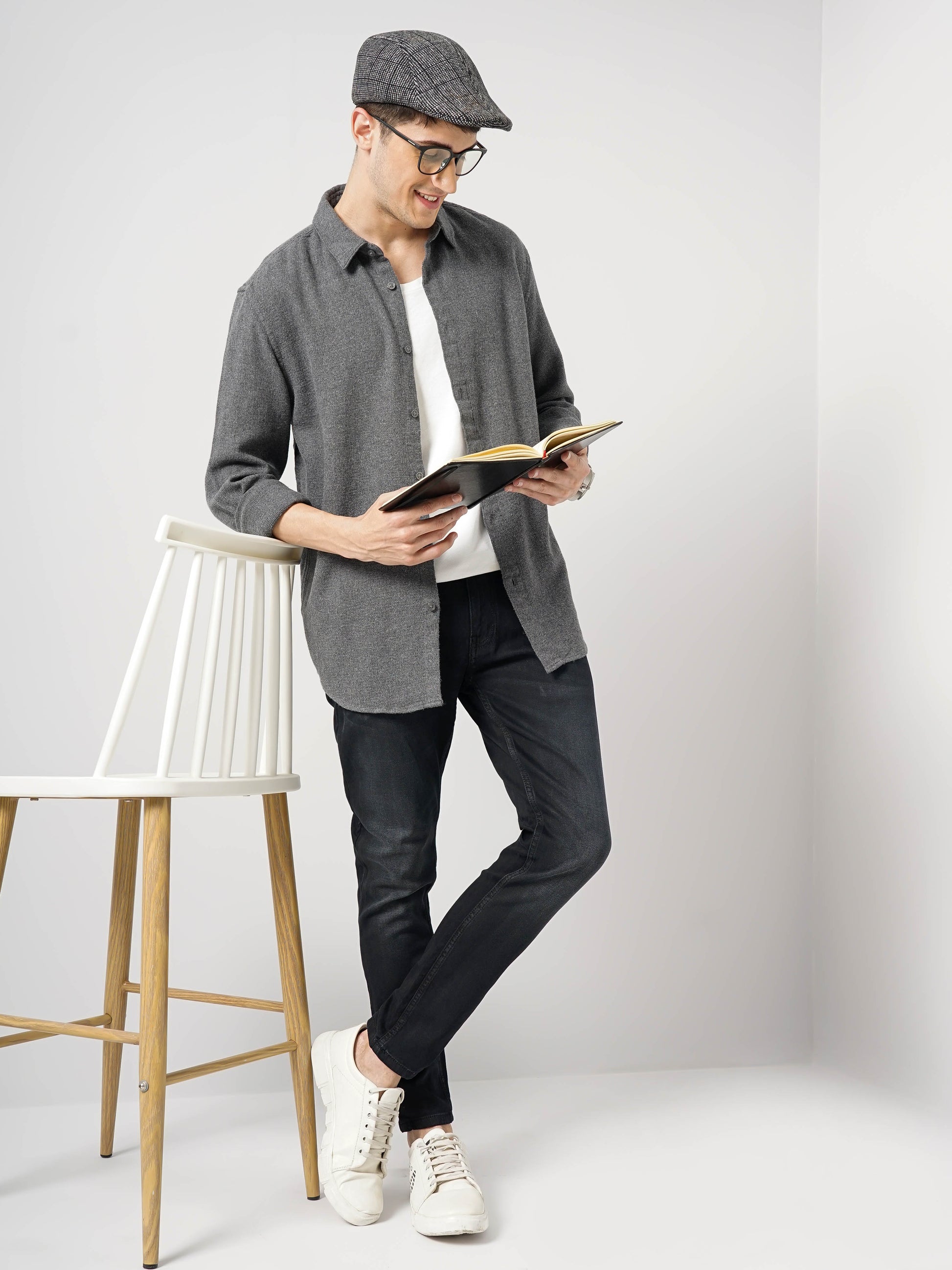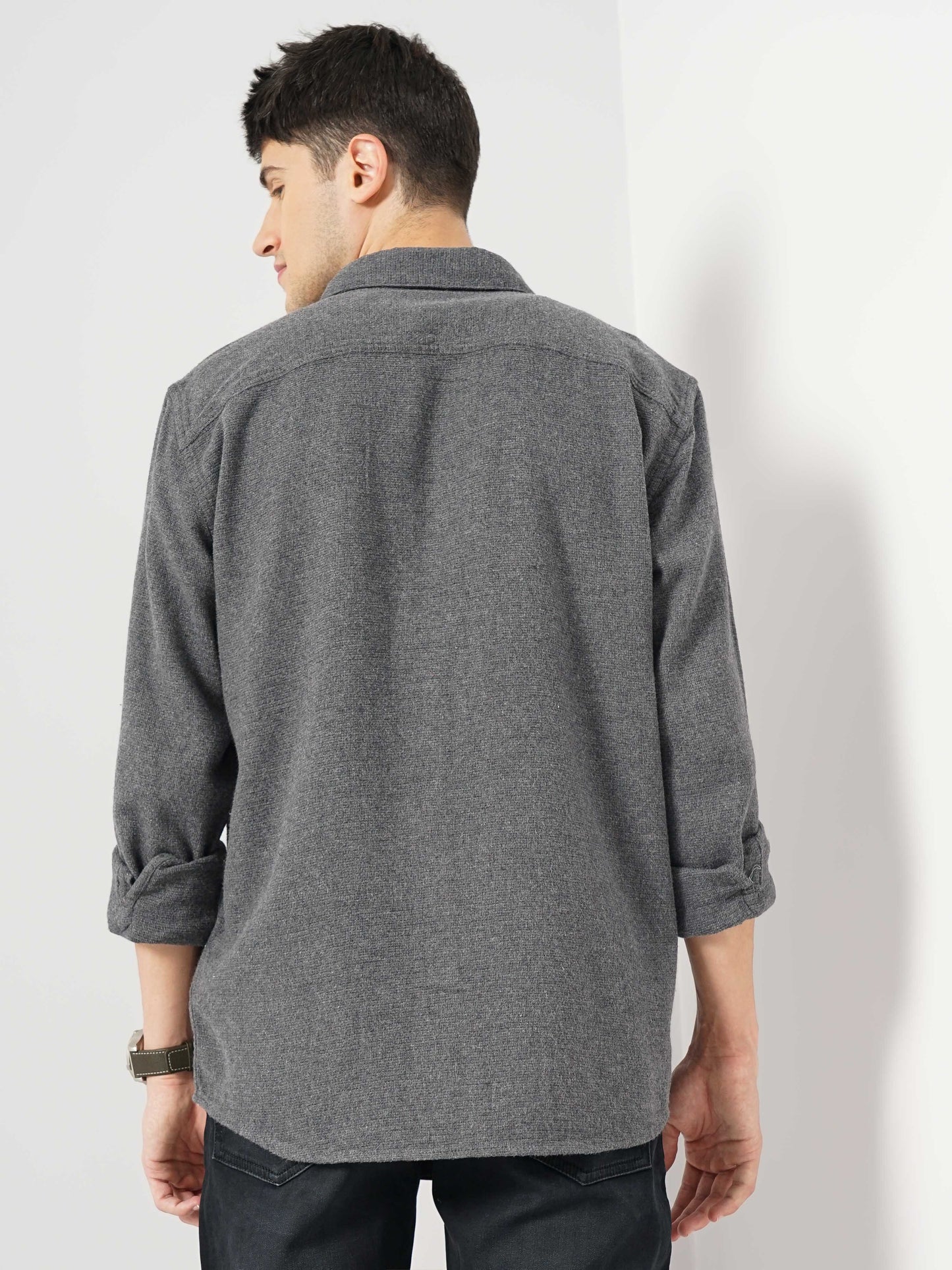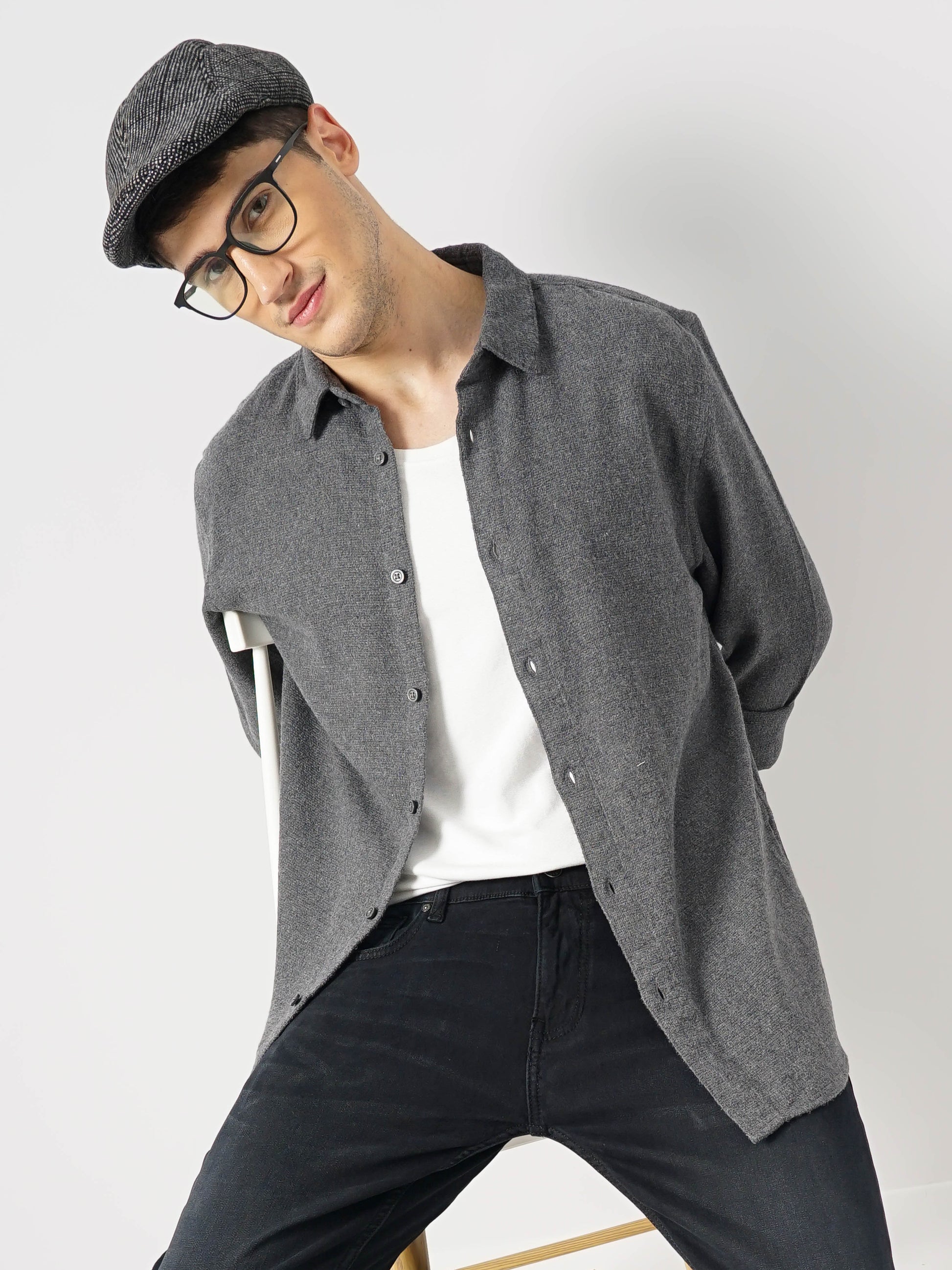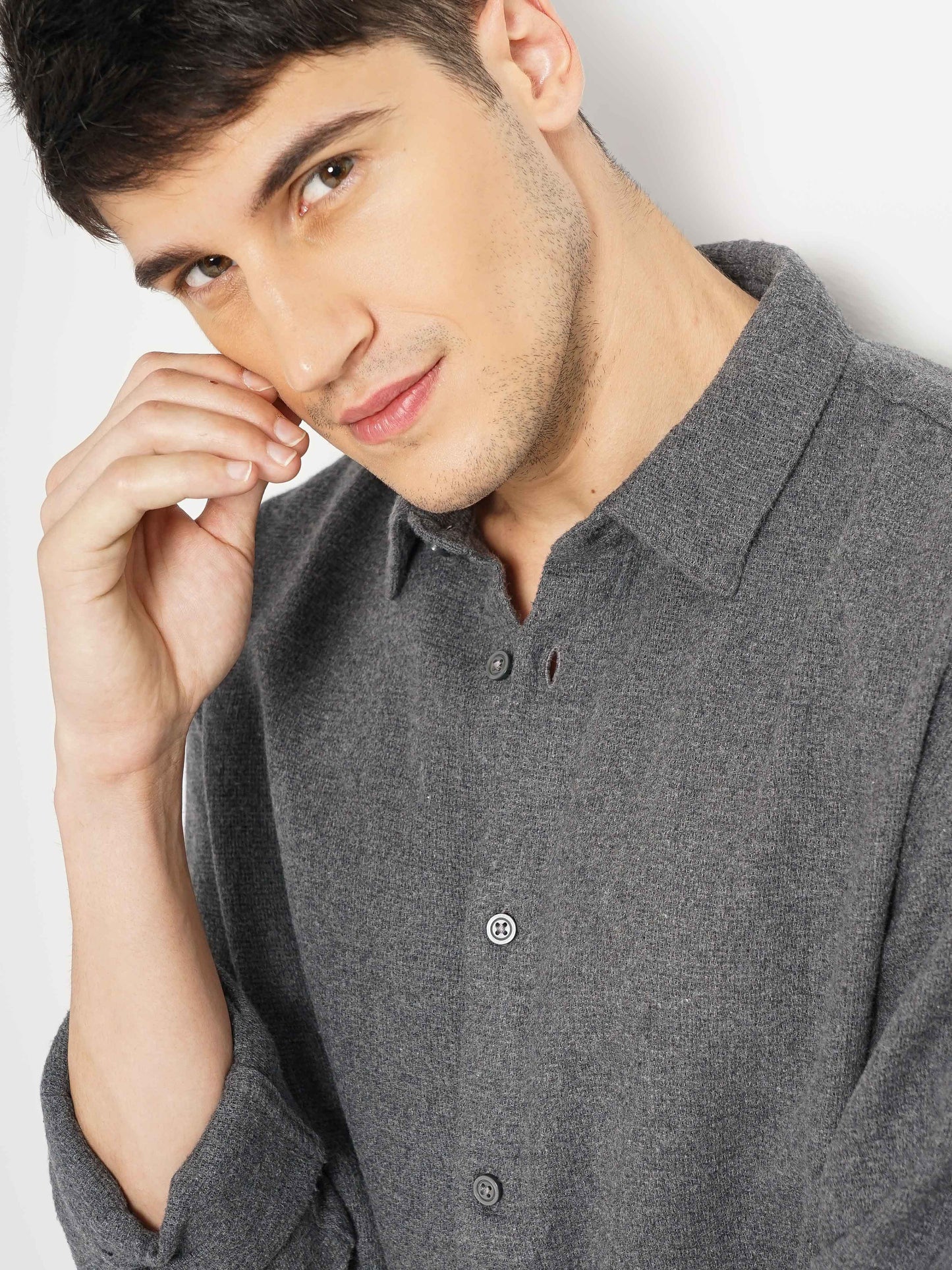 Celio* Solid Regular Fit Cotton Grey Shirt