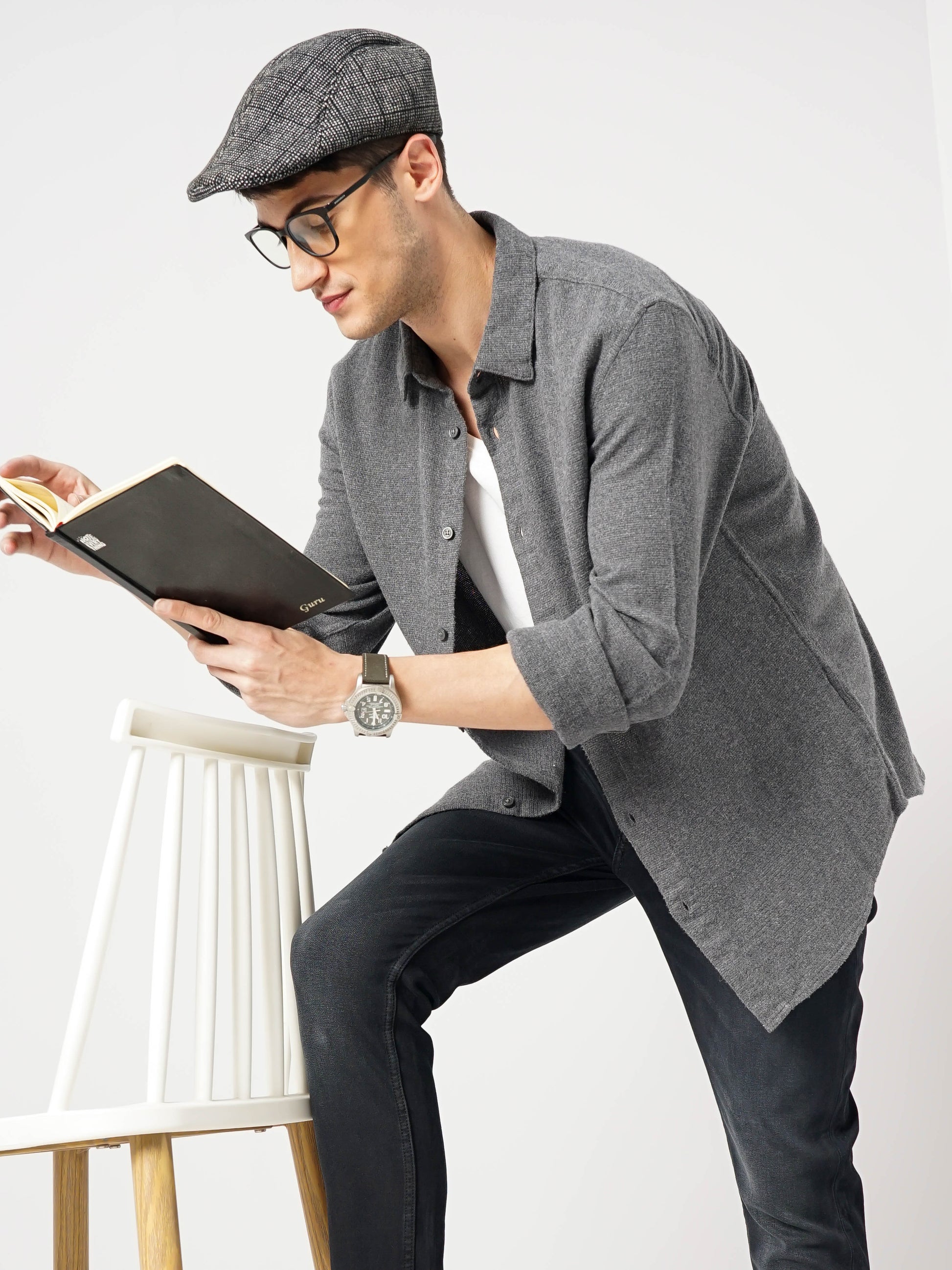 Experience casual elegance with the Celio Men Solid Regular Fit Cotton Shirt in Grey. Crafted from soft cotton, it features long sleeves and is perfect for everyday wear. Disclaimer: All other items in the image are only for display purposes and will not be a part of the delivery content. Product colour may slightly vary due to photographic lighting sources. Country of Origin - India.