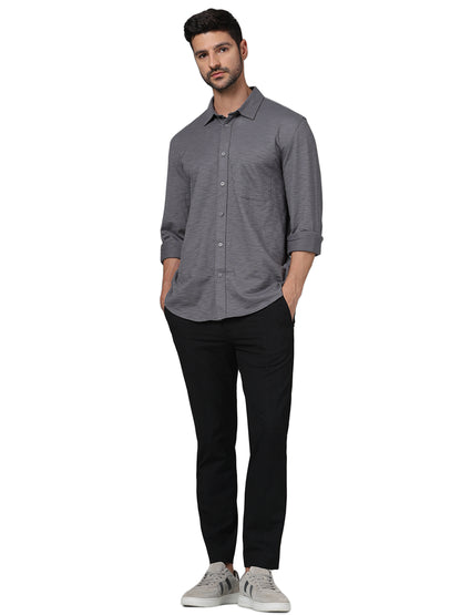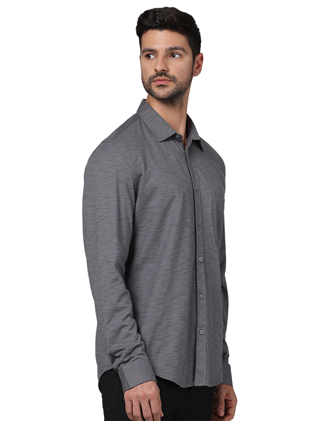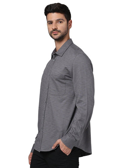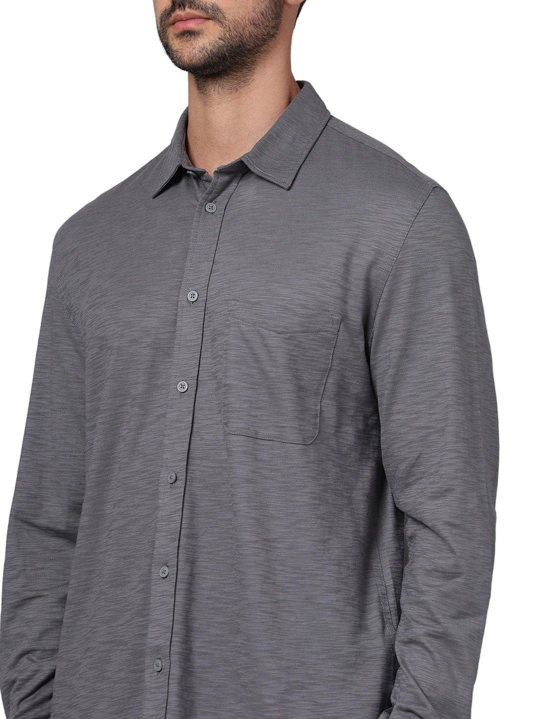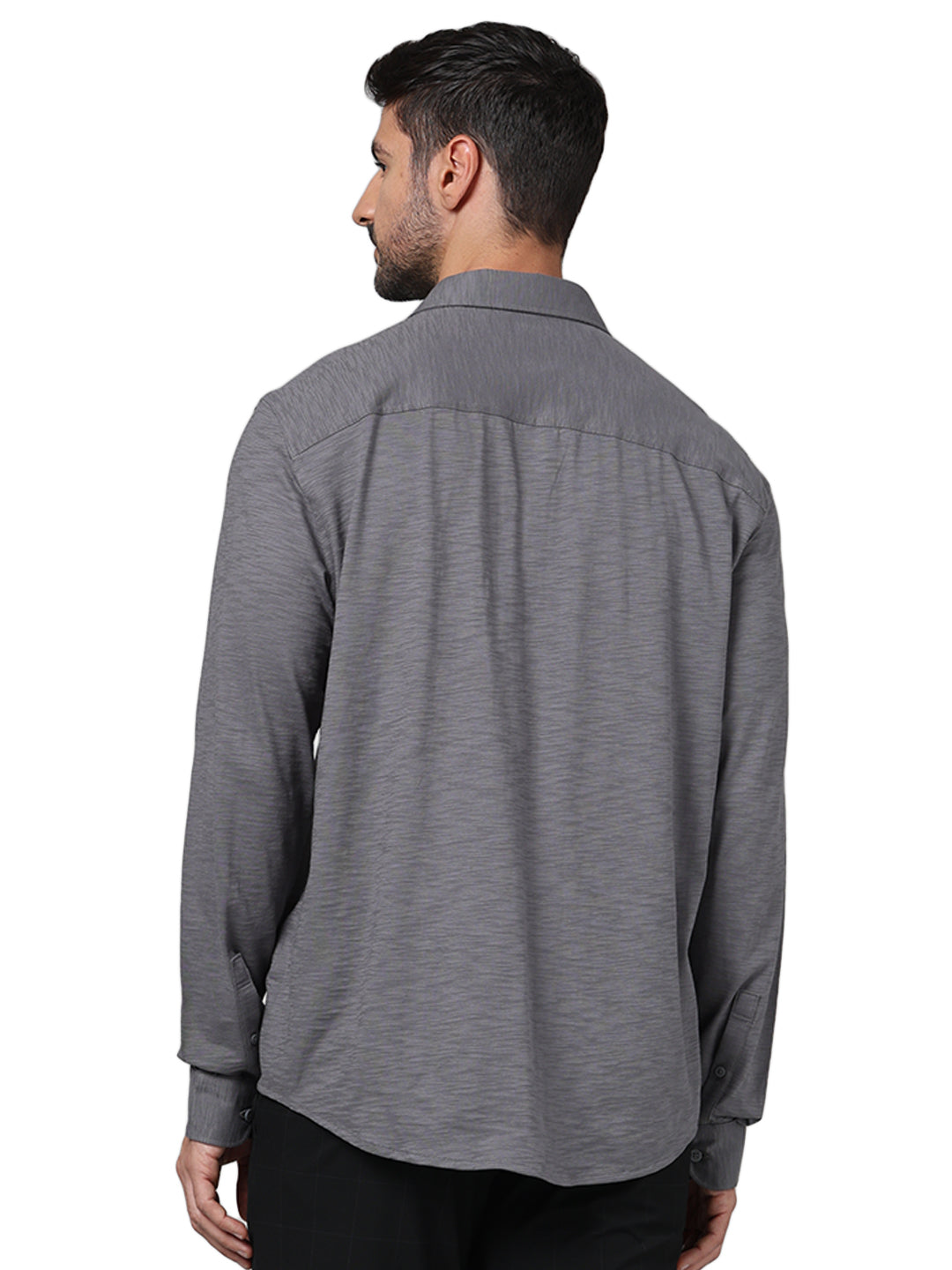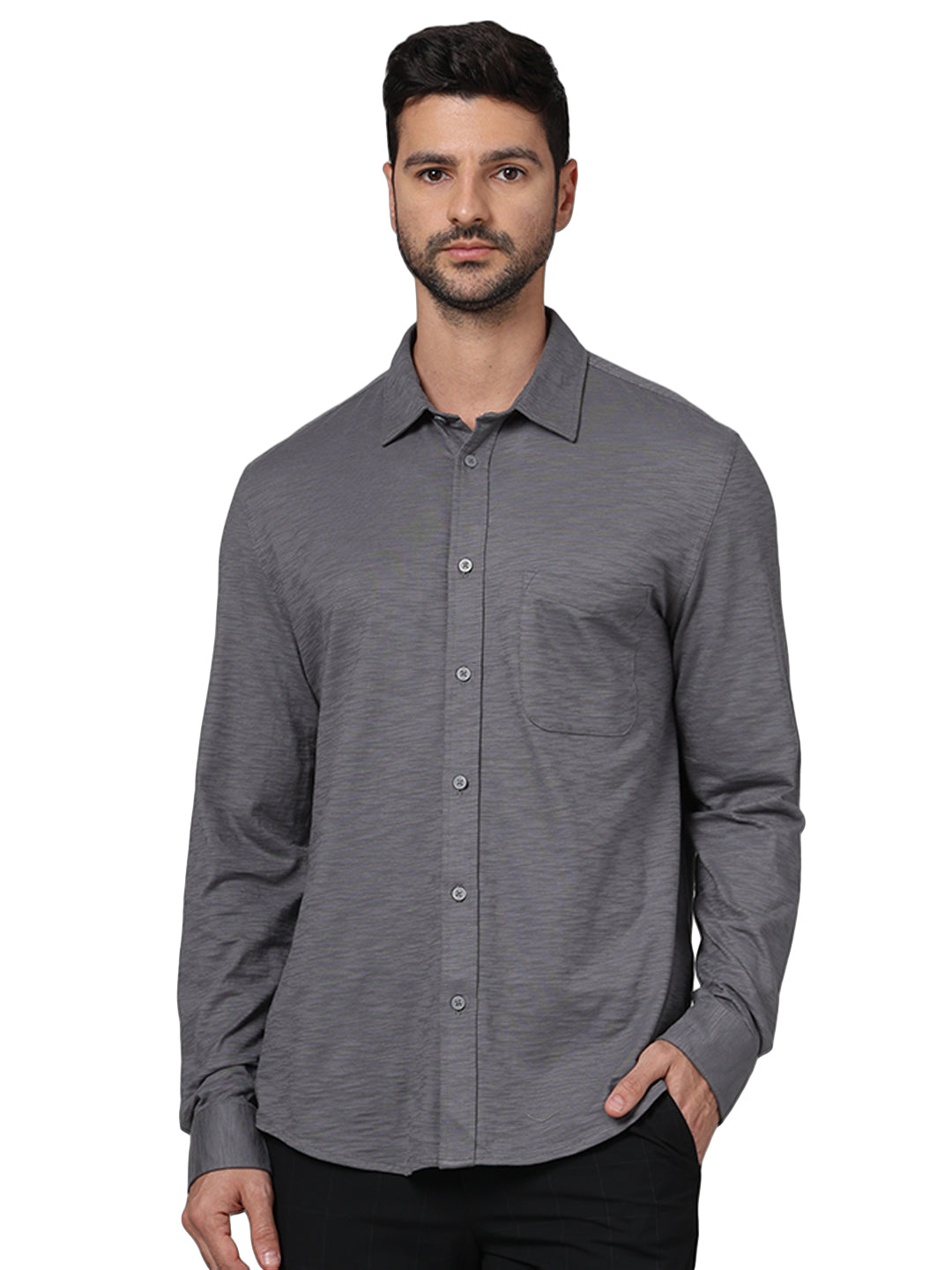 Celio* Solid Regular Fit Cotton Grey Shirt