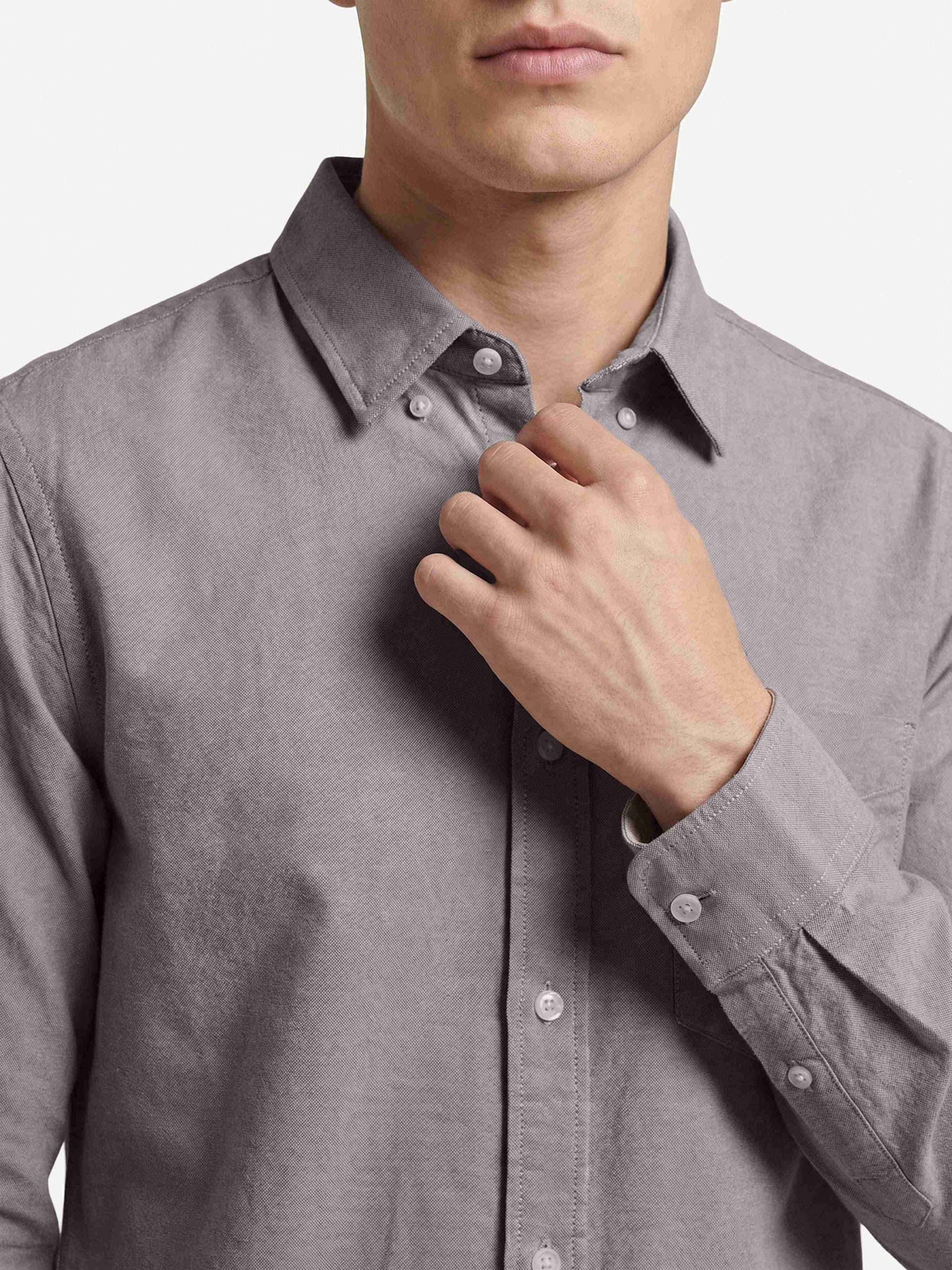 Celio* Men Grey Solid Regular Fit Cotton Shirts
