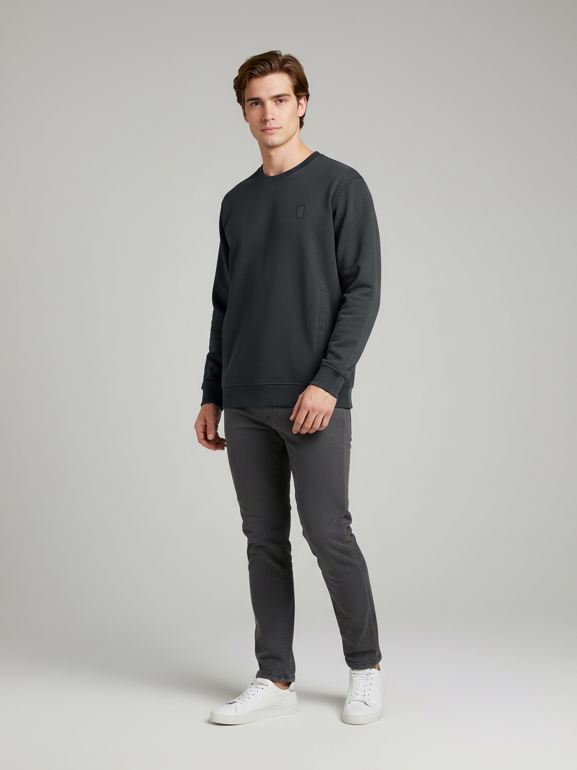 Celio Men Grey Solid Regular Fit Cotton Sweatshirts