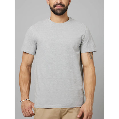 Celio* Solid Regular Fit Cotton Grey T-Shirt