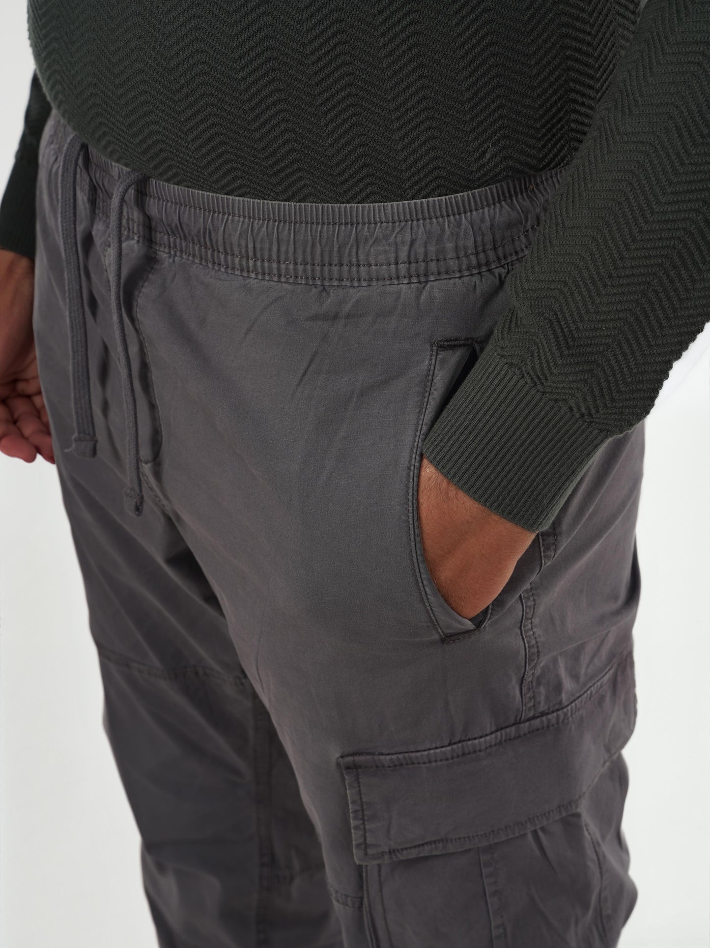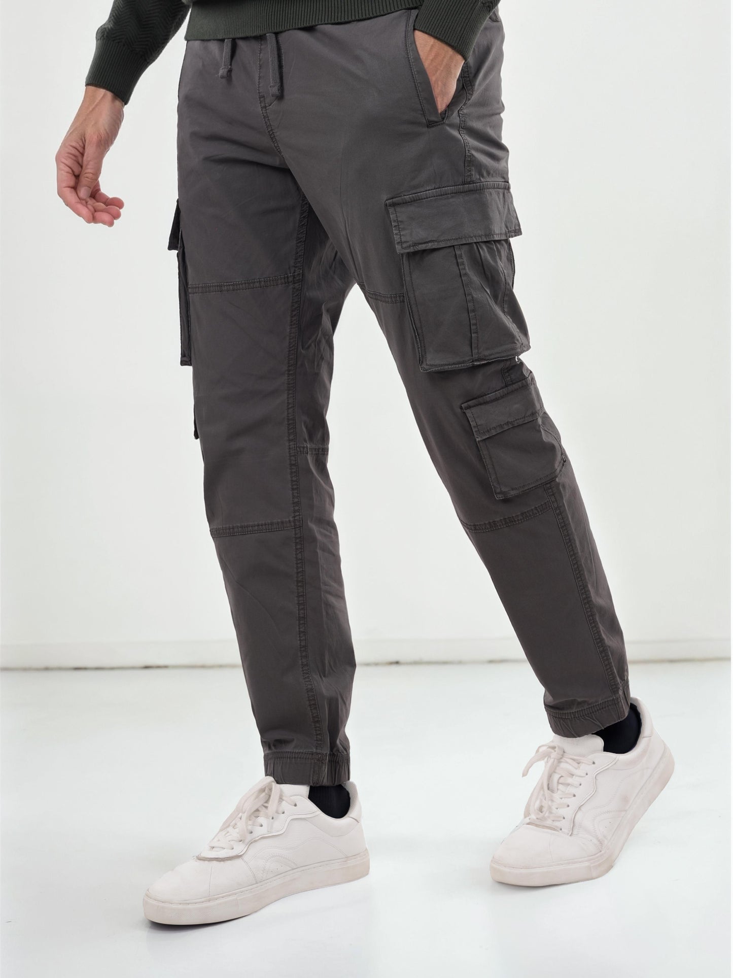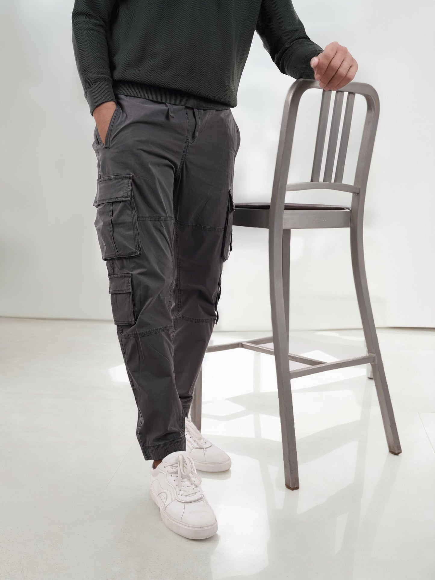 Elevate your casual wardrobe with Celio's men grey solid regular fit cargo Trouser, crafted from comfortable cotton for a stylish yet relaxed look. Disclaimer: All other items in the image are only for display purposes and will not be a part of the delivery content. Product colour may slightly vary due to photographic lighting sources. Country of Origin - India.p> JORAP