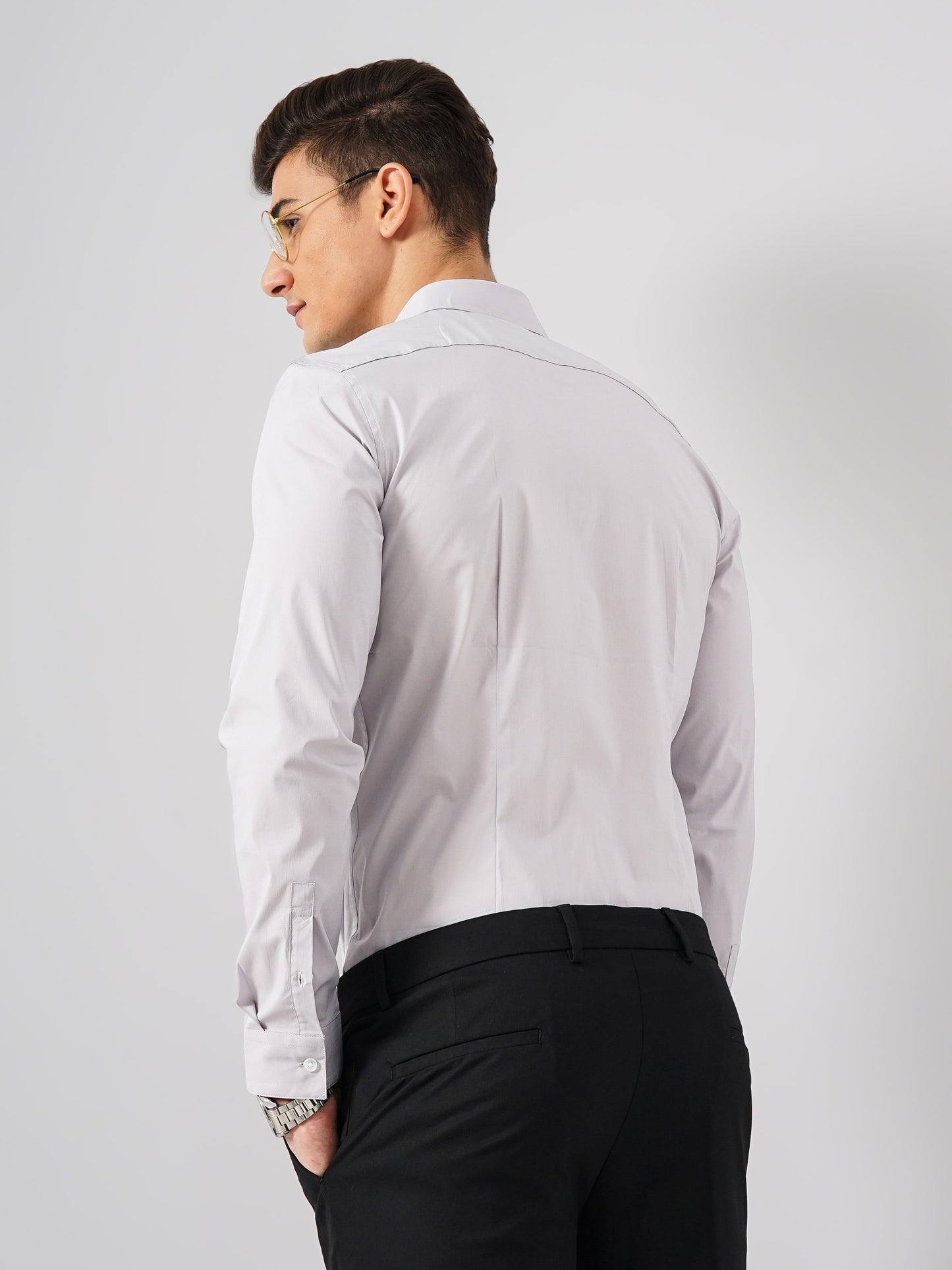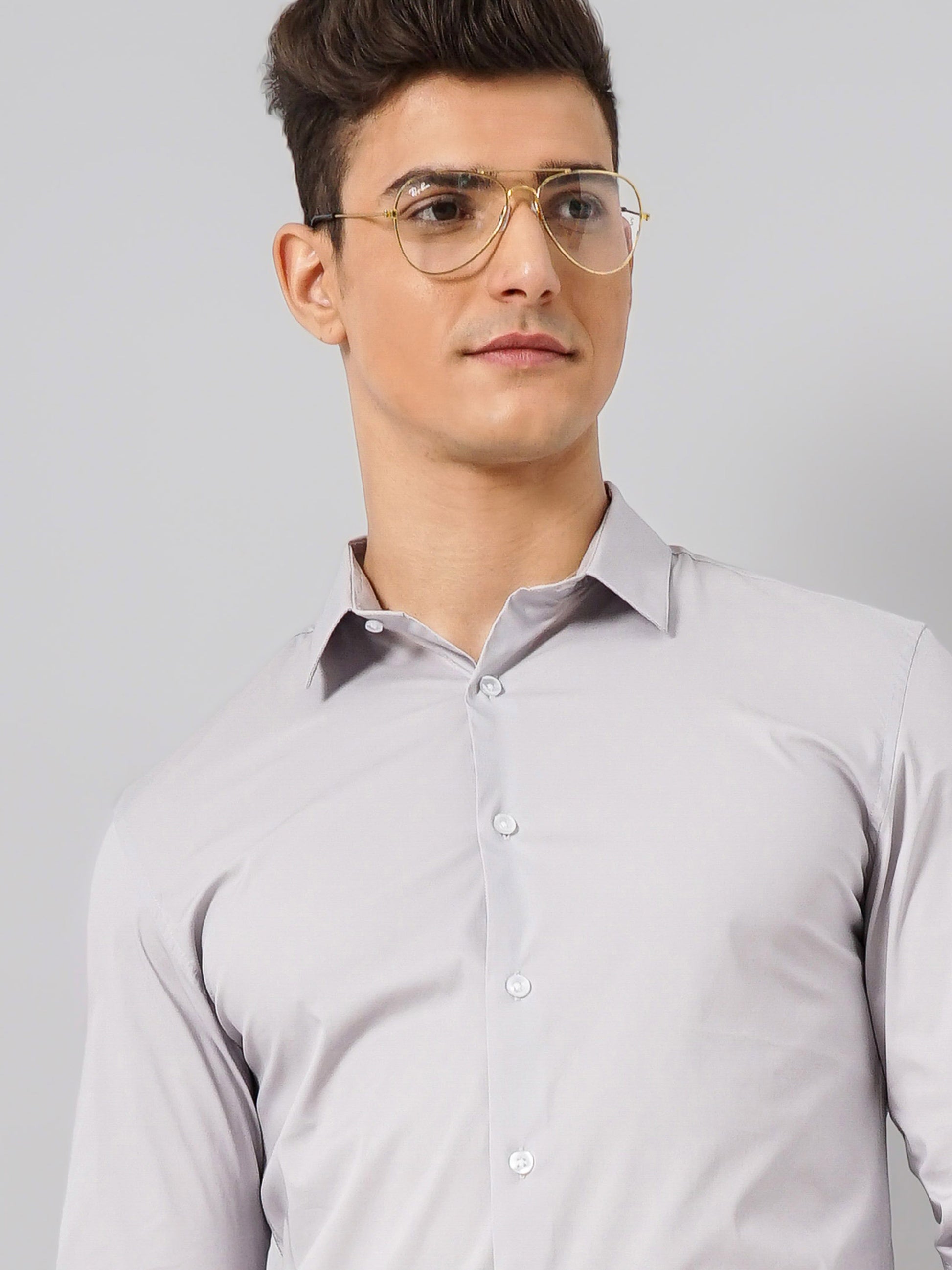 Stylish Celio Men Grey Spread Collar Slim Fit Cotton Formal Shirt. Perfect for casual occasions, featuring long sleeves and a comfortable cotton fabric. Disclaimer: All other items in the image are only for display purposes and will not be a part of the delivery content. Product colour may slightly vary due to photographic lighting sources. Country of Origin - India.