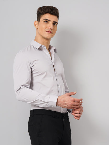Celio* Solid Slim Fit Cotton Grey Shirt