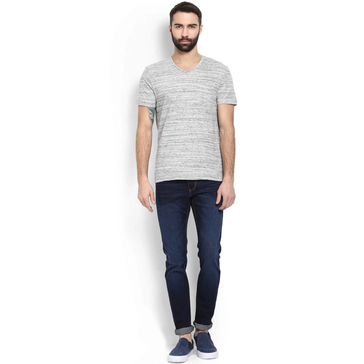 Celio* Solid Slim Fit Cotton Grey T-Shirt