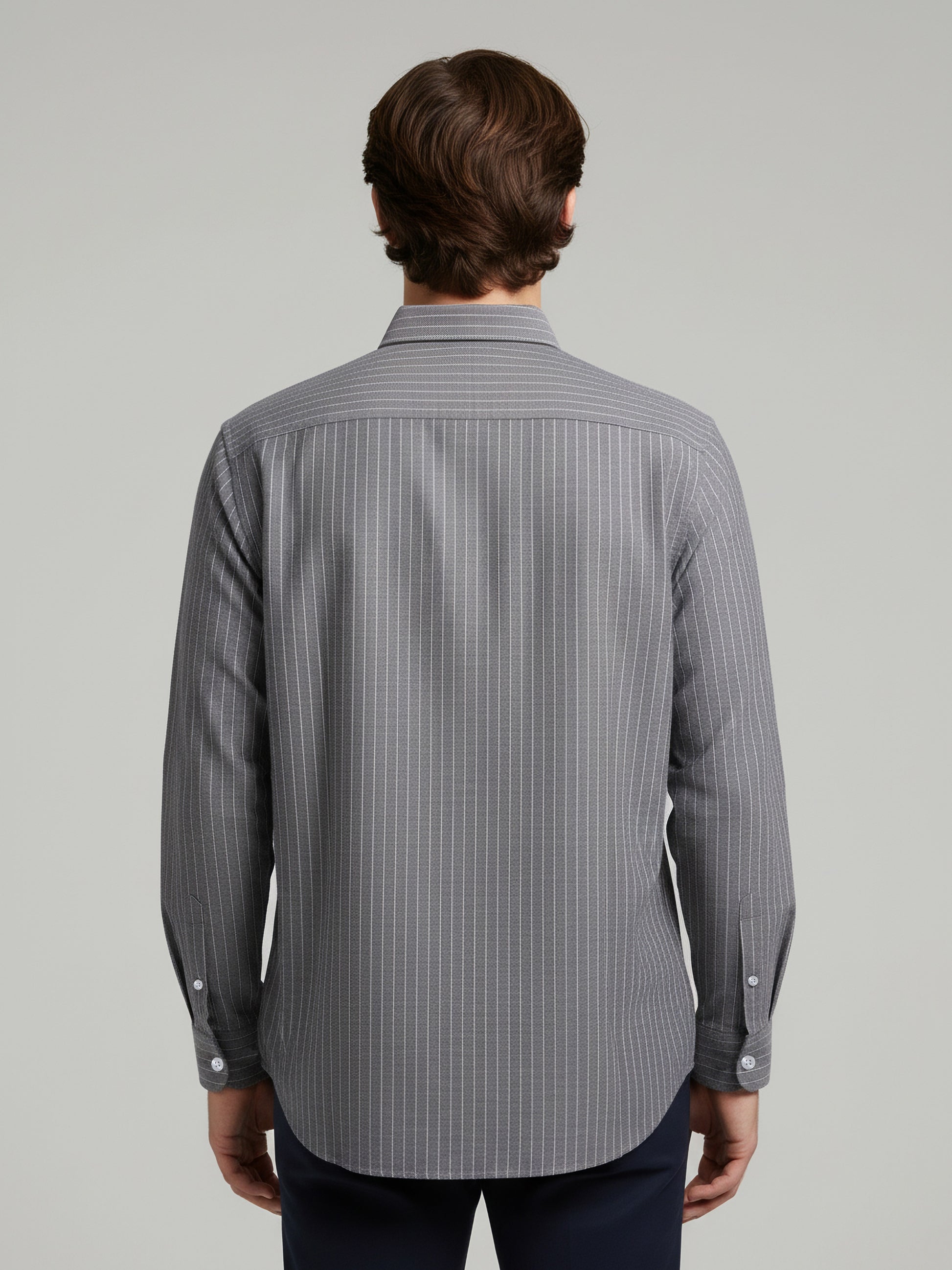 Discover comfort in the Celio Men Grey Striped Oversize Shirt. Crafted from cotton, this casual long-sleeve shirt is perfect for laid-back outings, blending style and ease effortlessly. Disclaimer: All other items in the image are only for display purposes and will not be a part of the delivery content. Product colour may slightly vary due to photographic lighting sources. Country of Origin - India.