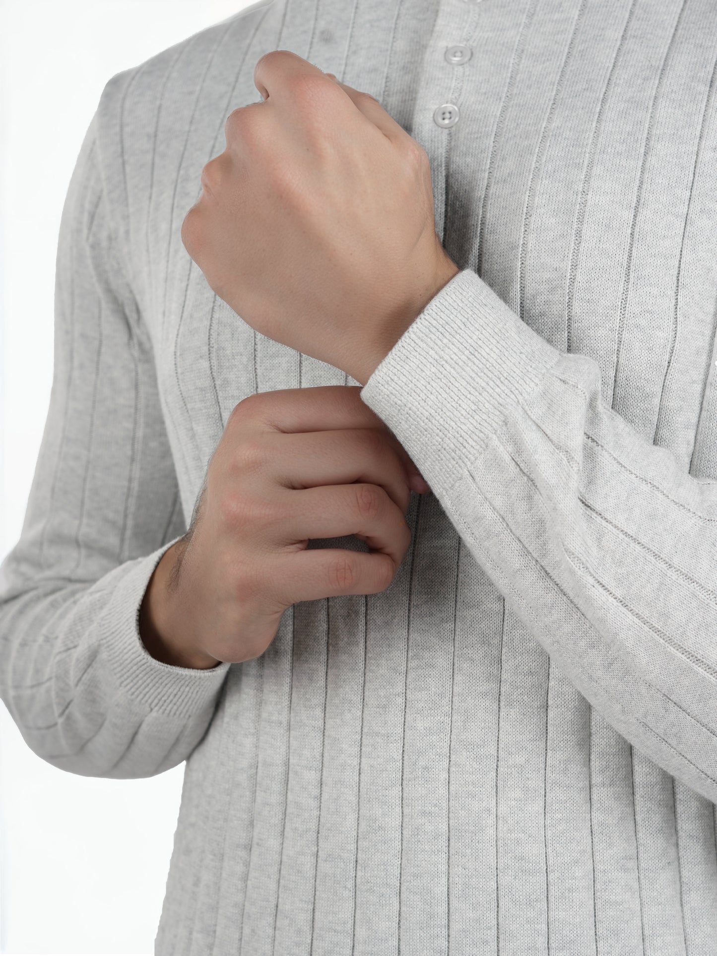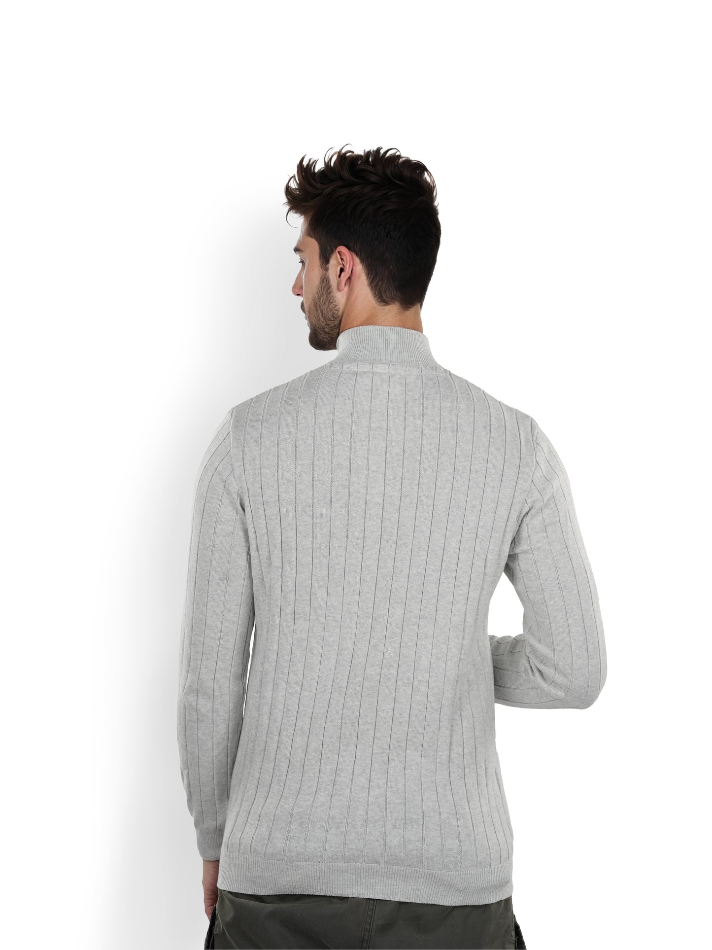Celio* Striped Regular Fit Cotton Grey Sweater