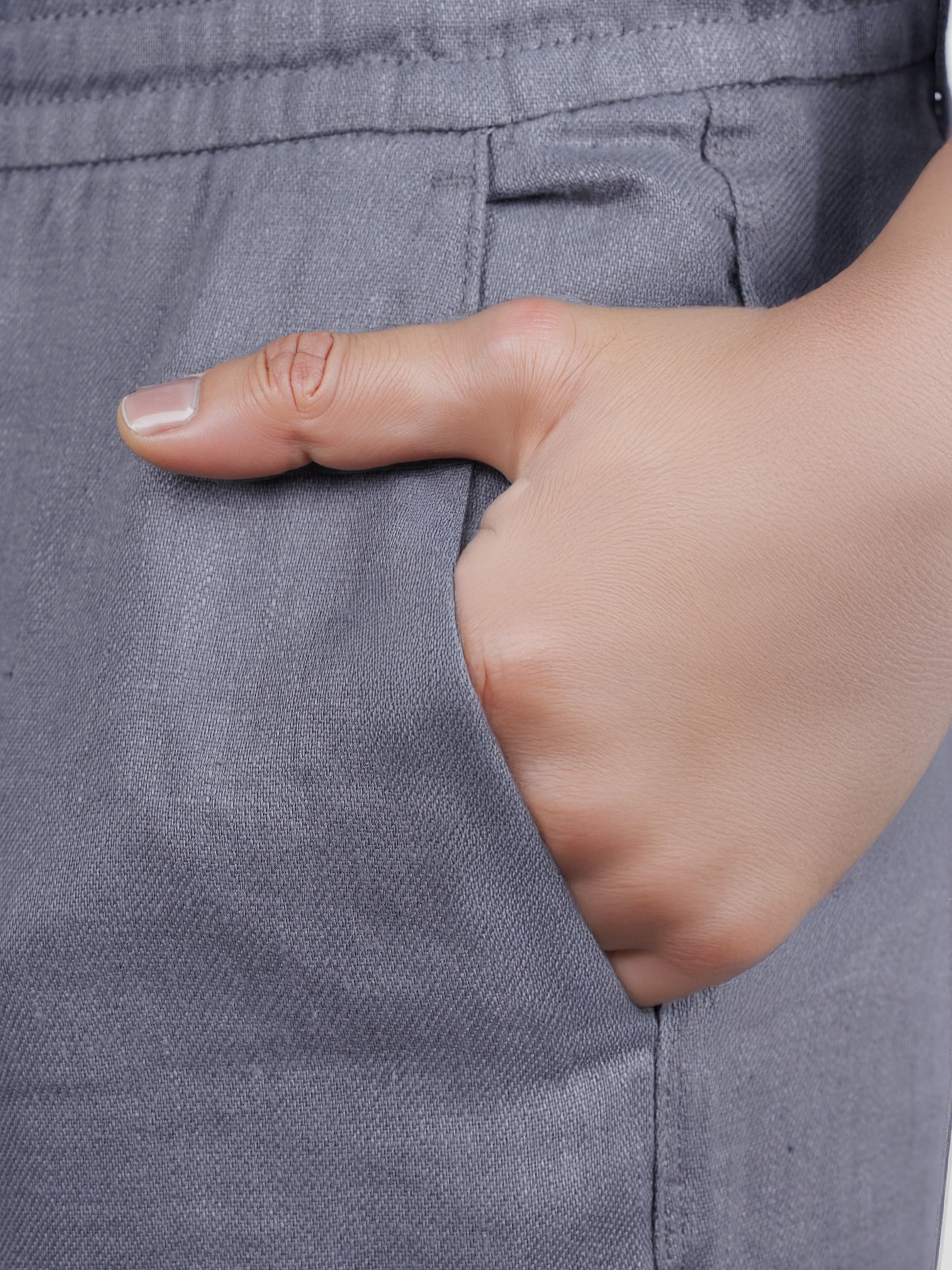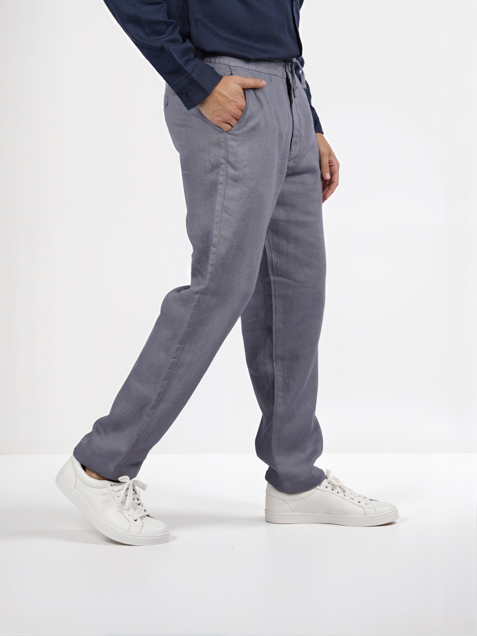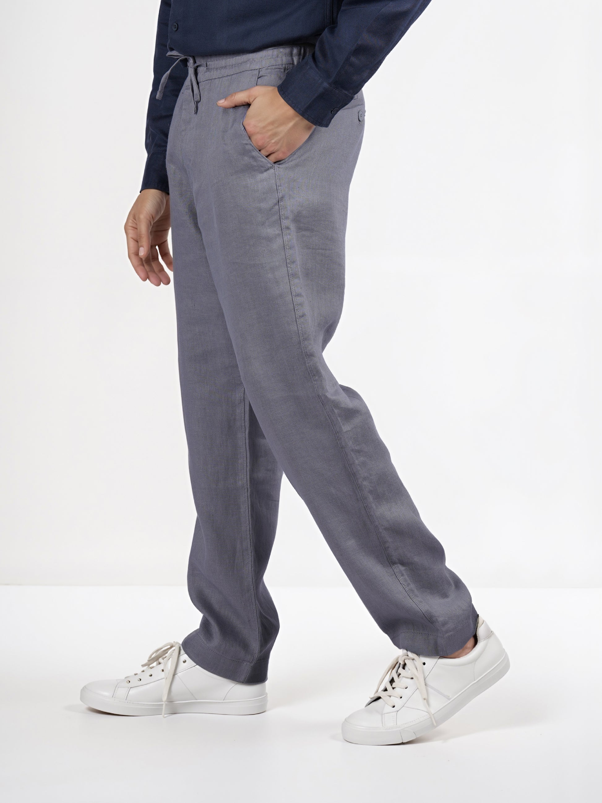 Elevate your casual look with Celio's grey solid straight fit linen trousers for men. Made from breathable linen, they offer comfort and style for any occasion. Disclaimer: All other items in the image are only for display purposes and will not be a part of the delivery content. Product colour may slightly vary due to photographic lighting sources. Country of Origin - India.