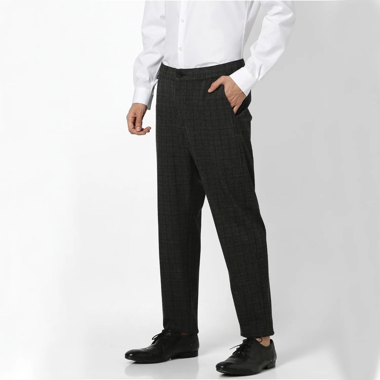 Celio* Checked Slim Fit Grey Trouser