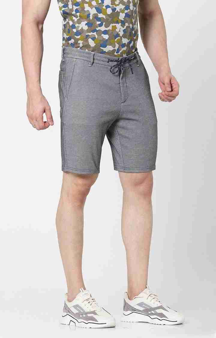 Discover ultimate comfort with Celio Men's Regular Fit Blue Knitted Shorts. Crafted from soft polycotton, perfect for casual outings. Stylish grey color enhances your casual look. Disclaimer: All other items in the image are only for display purposes and will not be a part of the delivery content. Product colour may slightly vary due to photographic lighting sources. Country of Origin - India.