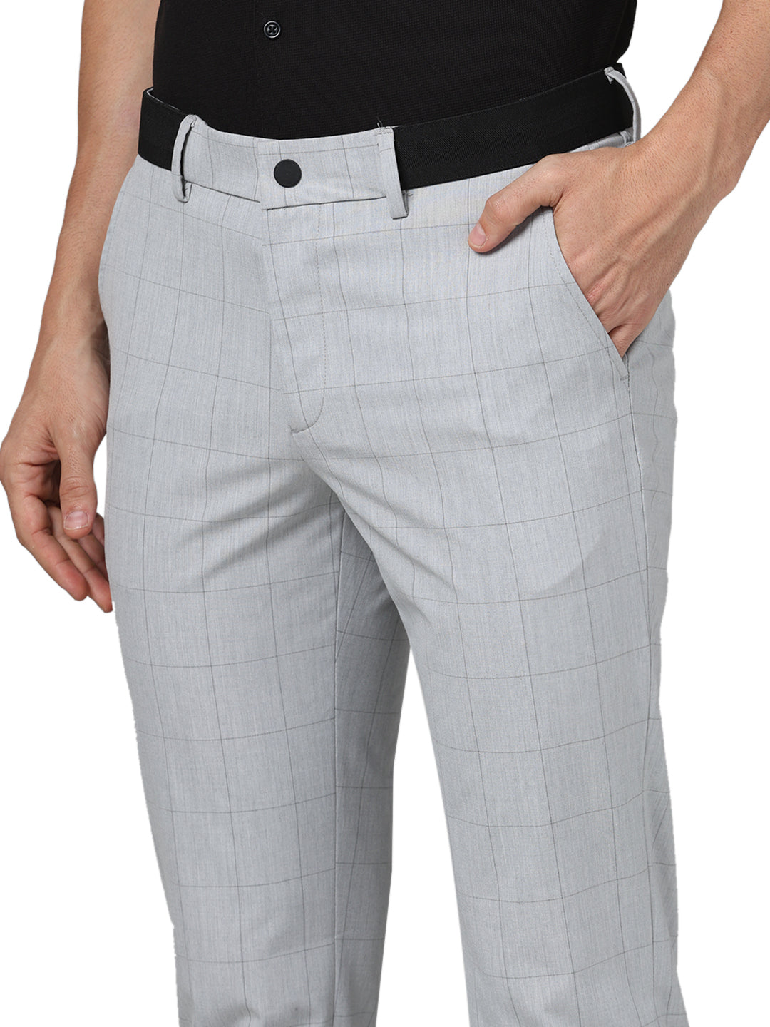 Elevate your casual wardrobe with Celio's grey checked slim fit Trouser. Crafted from durable polyester, these men's Trouser offer style and comfort for any occasion. Disclaimer: All other items in the image are only for display purposes and will not be a part of the delivery content. Product colour may slightly vary due to photographic lighting sources. Country of Origin - India.p> GOCARREAUIN