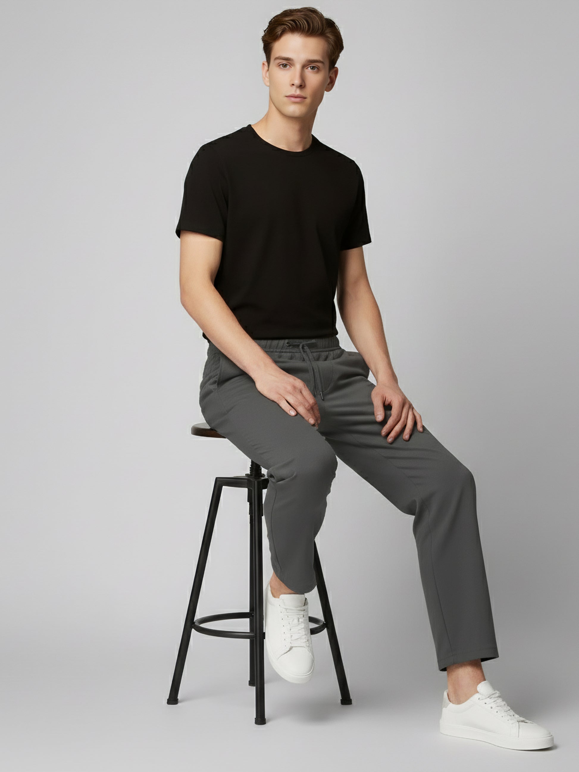 Stylish baggy fashion trousers for men by Celio in grey. Made from comfortable polyester, these casual pants are perfect for everyday wear. Disclaimer: All other items in the image are only for display purposes and will not be a part of the delivery content. Product colour may slightly vary due to photographic lighting sources. Country of Origin - India.