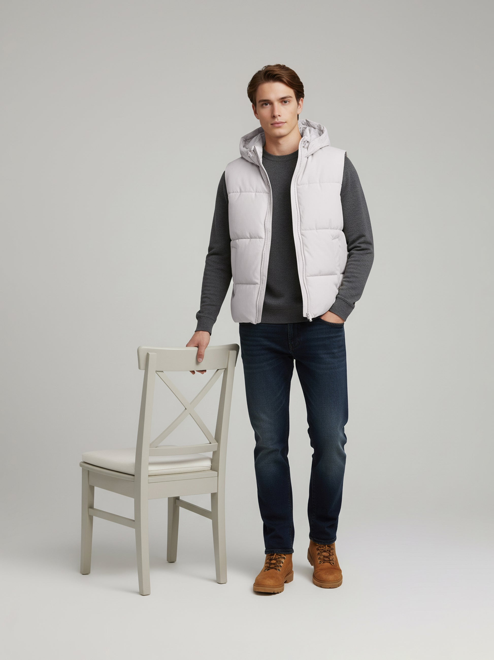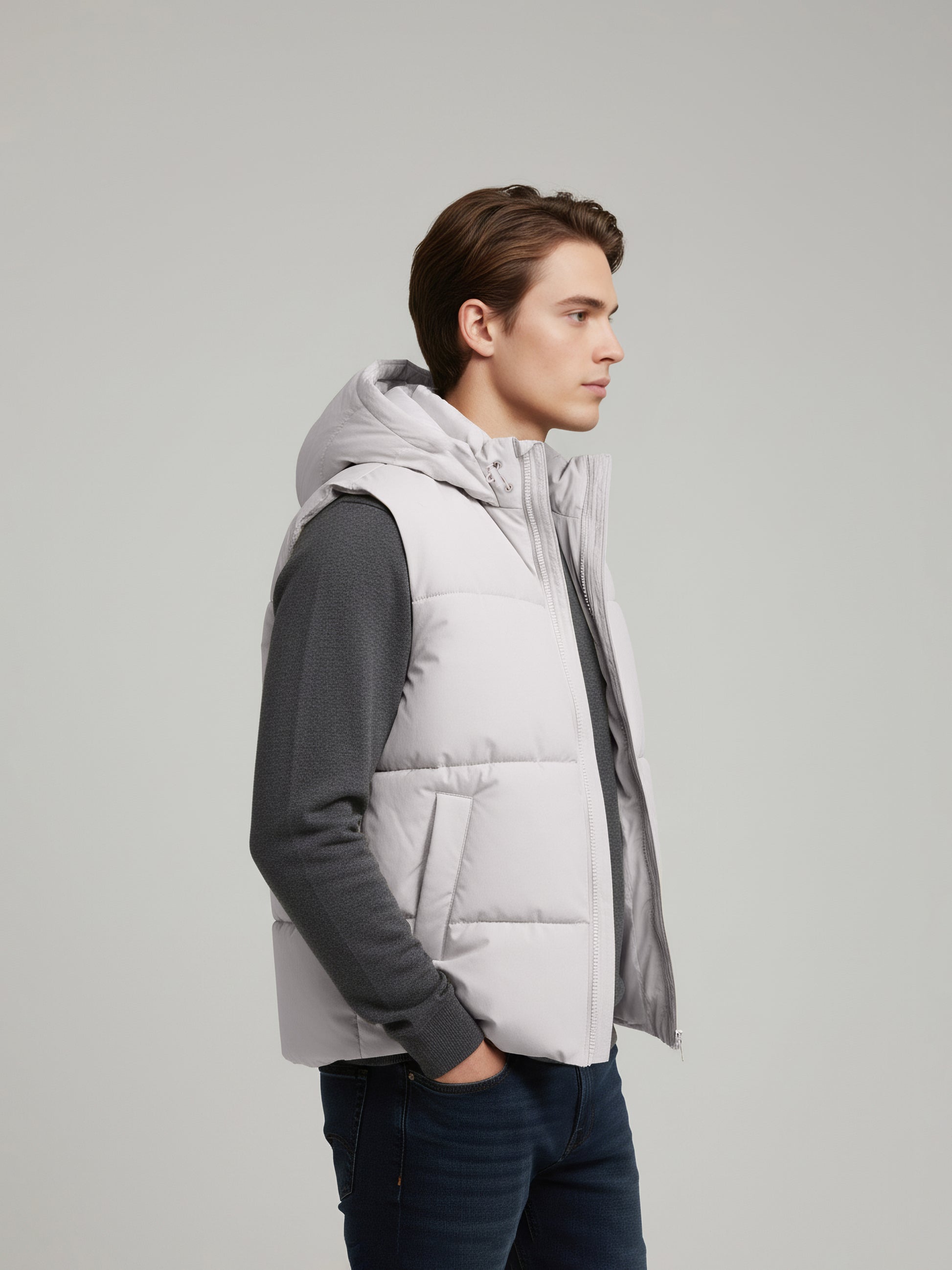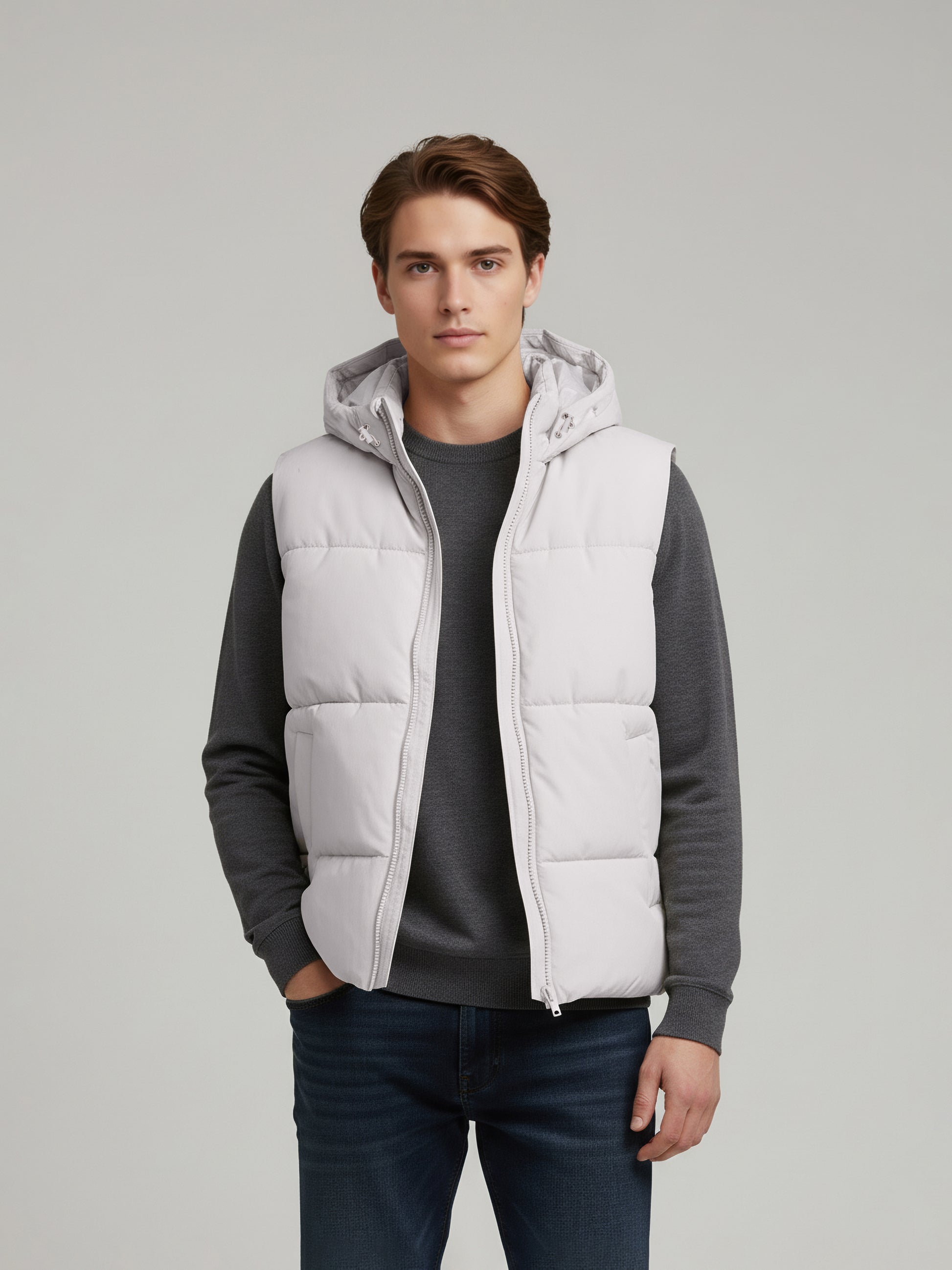 The Celio Men Grey Solid Puff Jacket offers a stylish and casual look. Made from durable polyester, this sleeveless jacket is perfect for layering in cooler weather. Disclaimer: All other items in the image are only for display purposes and will not be a part of the delivery content. Product colour may slightly vary due to photographic lighting sources. Country of Origin - India.