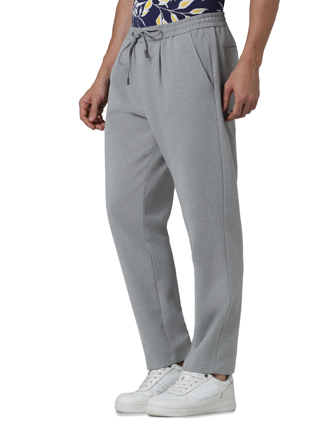 Shop the Celio Men Grey Solid Regular Fit Polyester Casual Trouser, perfect for casual occasions. Made from comfortable polyester, they offer style and versatility. Disclaimer: All other items in the image are only for display purposes and will not be a part of the delivery content. Product colour may slightly vary due to photographic lighting sources. Country of Origin - India.