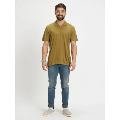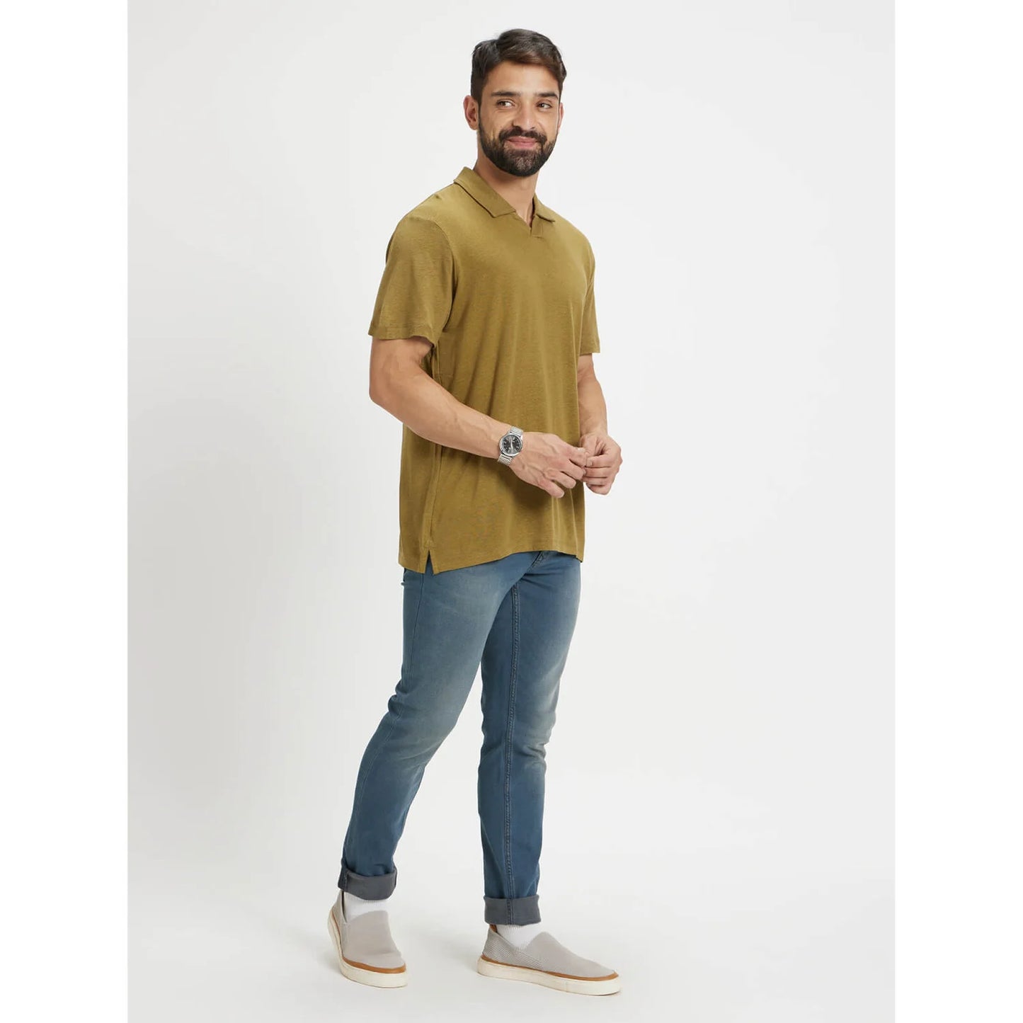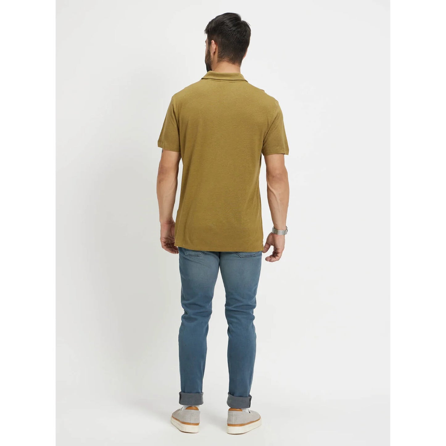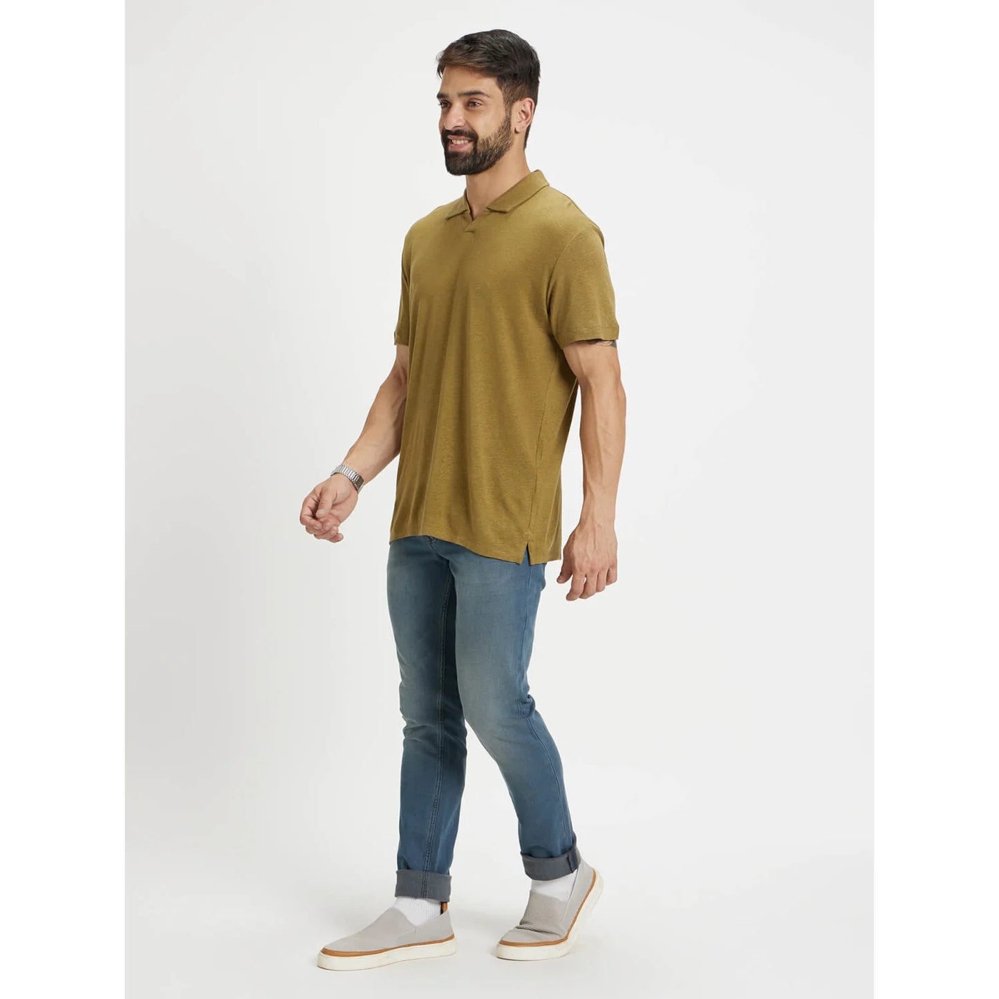 Elevate your casual style with the Celio Men's Khaki Linen Polo in Deolive Khaki. Made from a comfortable linen-blend, this half-sleeve shirt is perfect for any laid-back occasion. Disclaimer: All other items in the image are only for display purposes and will not be a part of the delivery content. Product colour may slightly vary due to photographic lighting sources. Country of Origin - India.