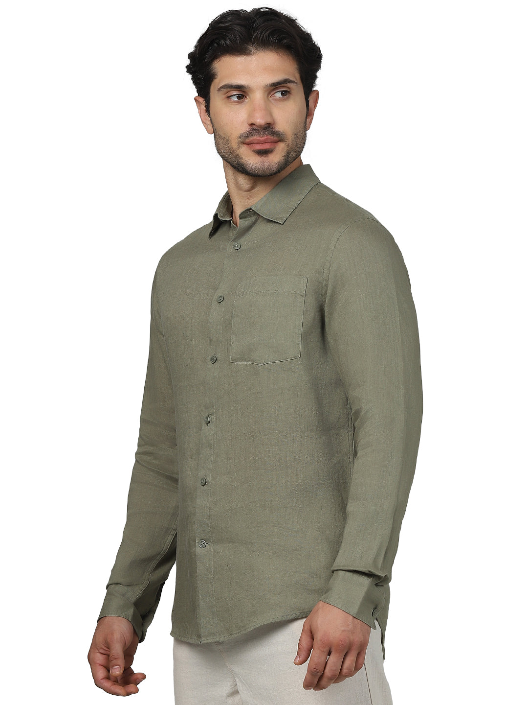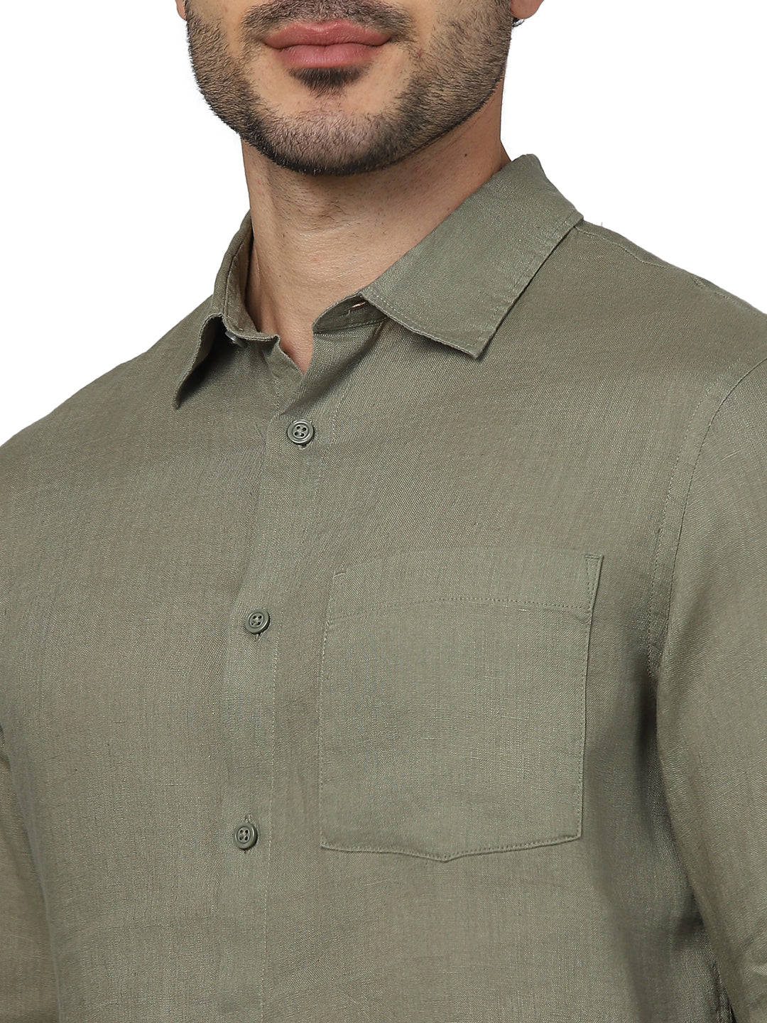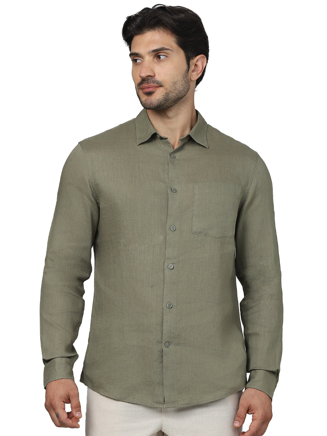 Elevate your casual wardrobe with the Celio Men Khaki Spread Collar Linen Shirt. Crafted for comfort, this regular fit shirt features long sleeves and a stylish khaki color. Disclaimer: All other items in the image are only for display purposes and will not be a part of the delivery content. Product colour may slightly vary due to photographic lighting sources. Country of Origin - India.