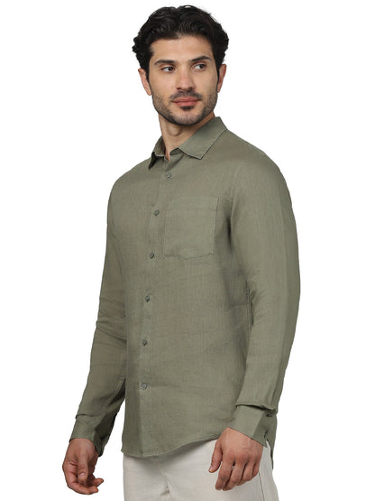 Celio* Solid Regular Fit Linen Khaki Shirt