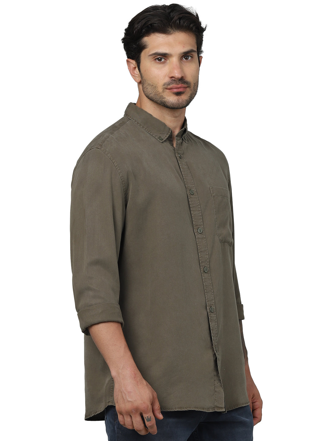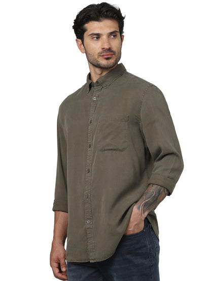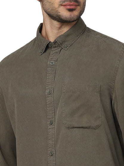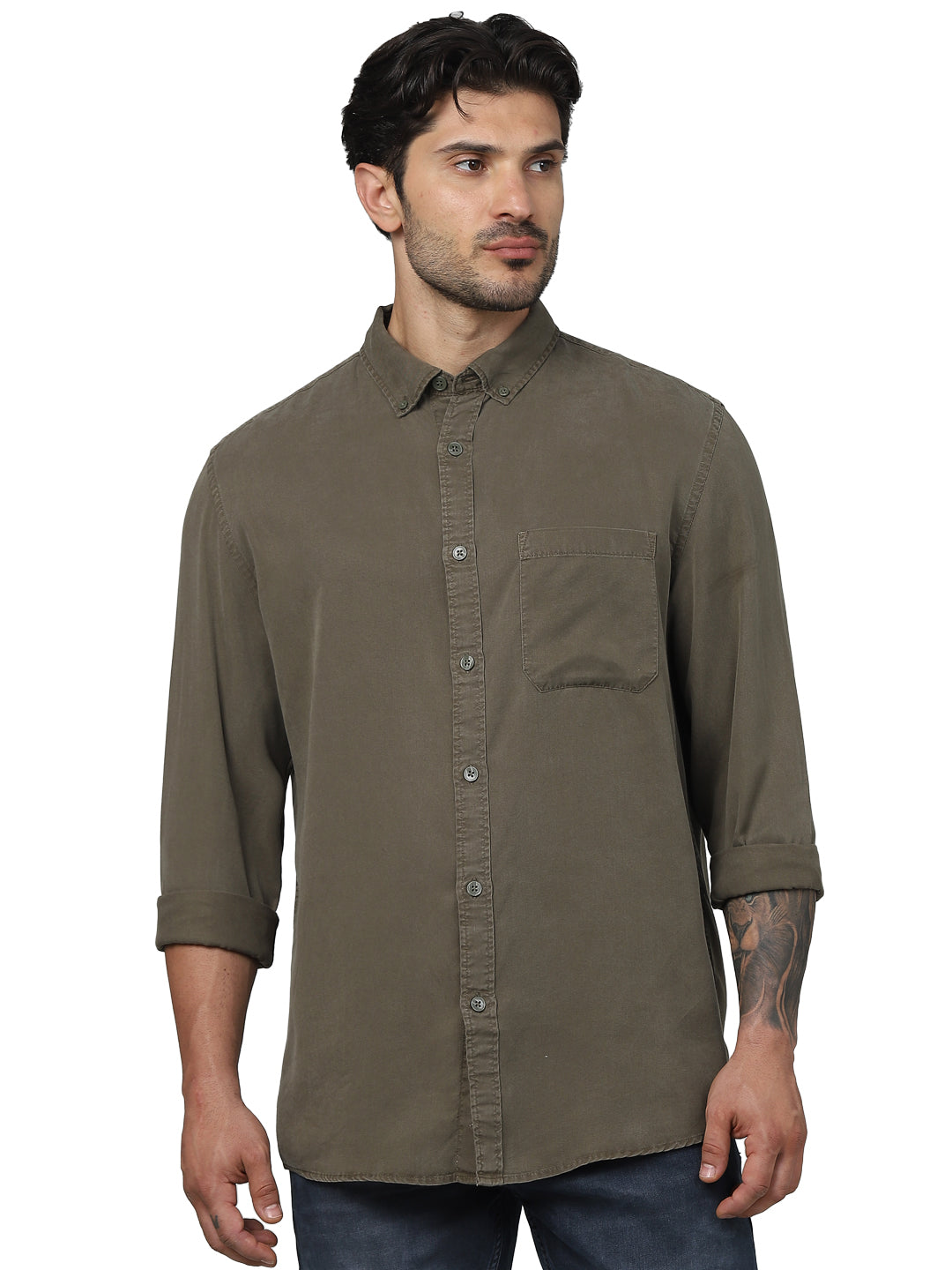 Elevate your casual look with the Celio Men Khaki Button-Down Collar Solid Oversized Lyocell Formal Shirt featuring long sleeves and a stylish design. Disclaimer: All other items in the image are only for display purposes and will not be a part of the delivery content. Product colour may slightly vary due to photographic lighting sources. Country of Origin - India.