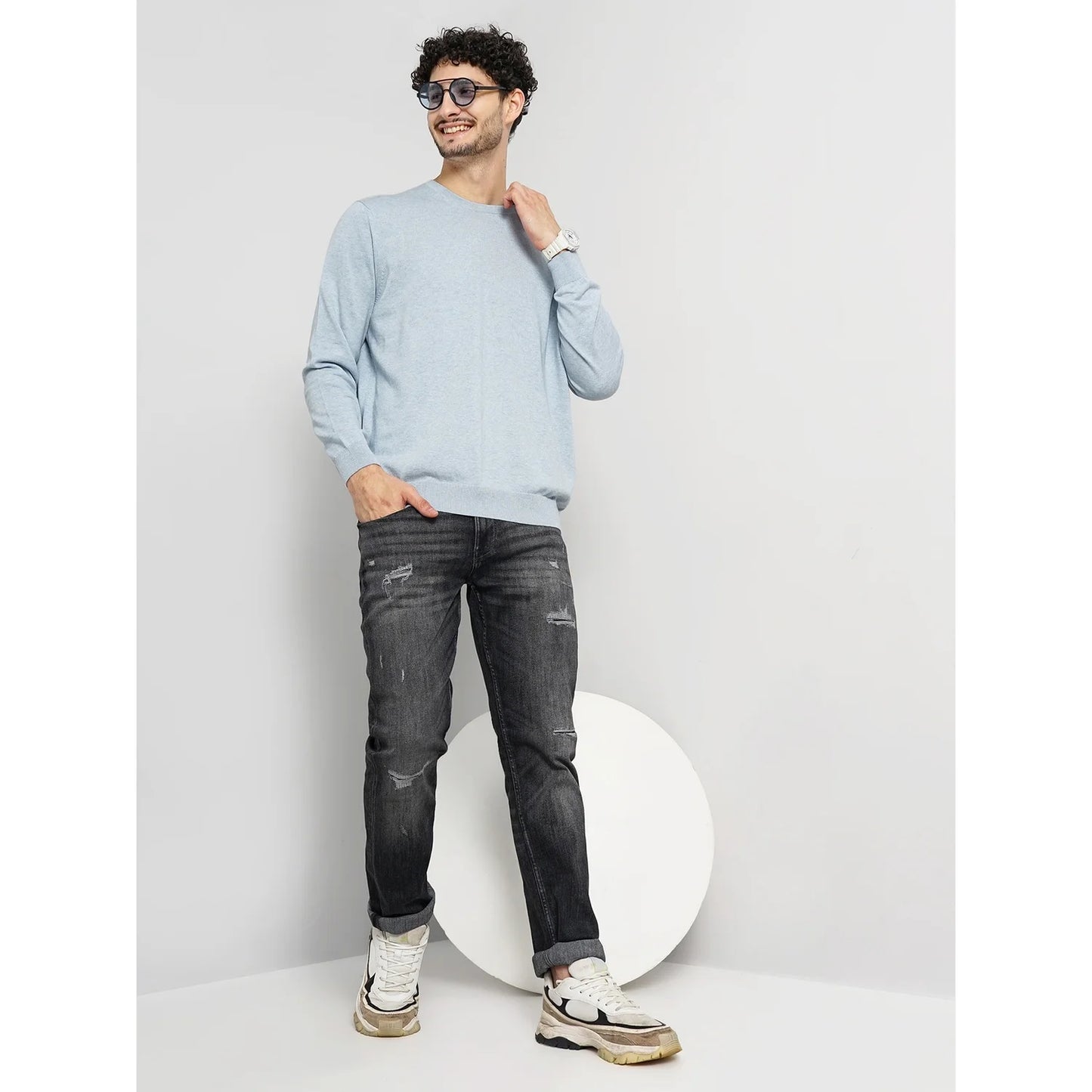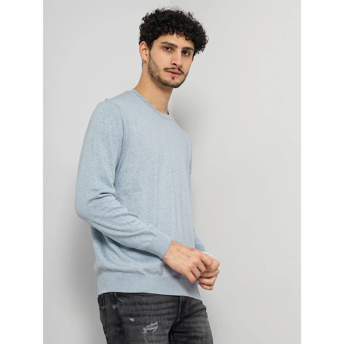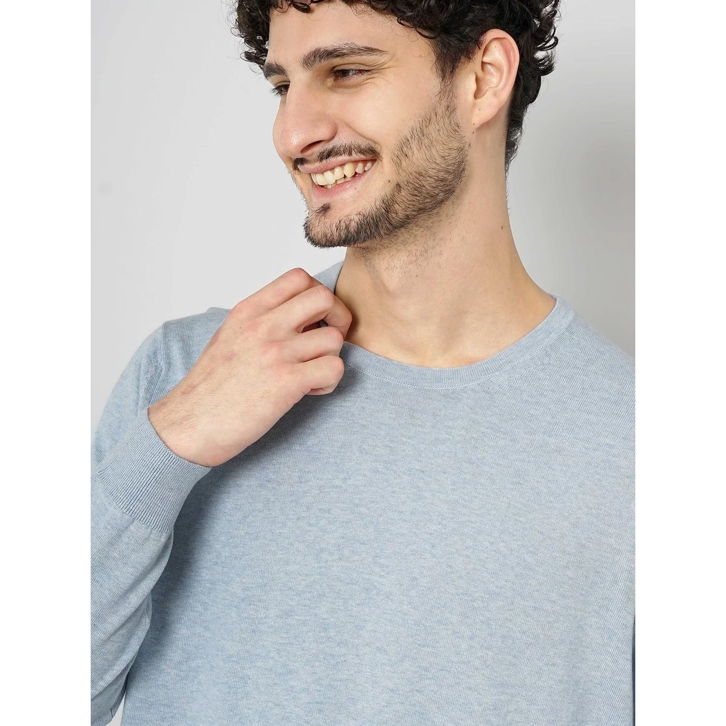 Celio* Solid Regular Fit Cotton Light Blue Sweater