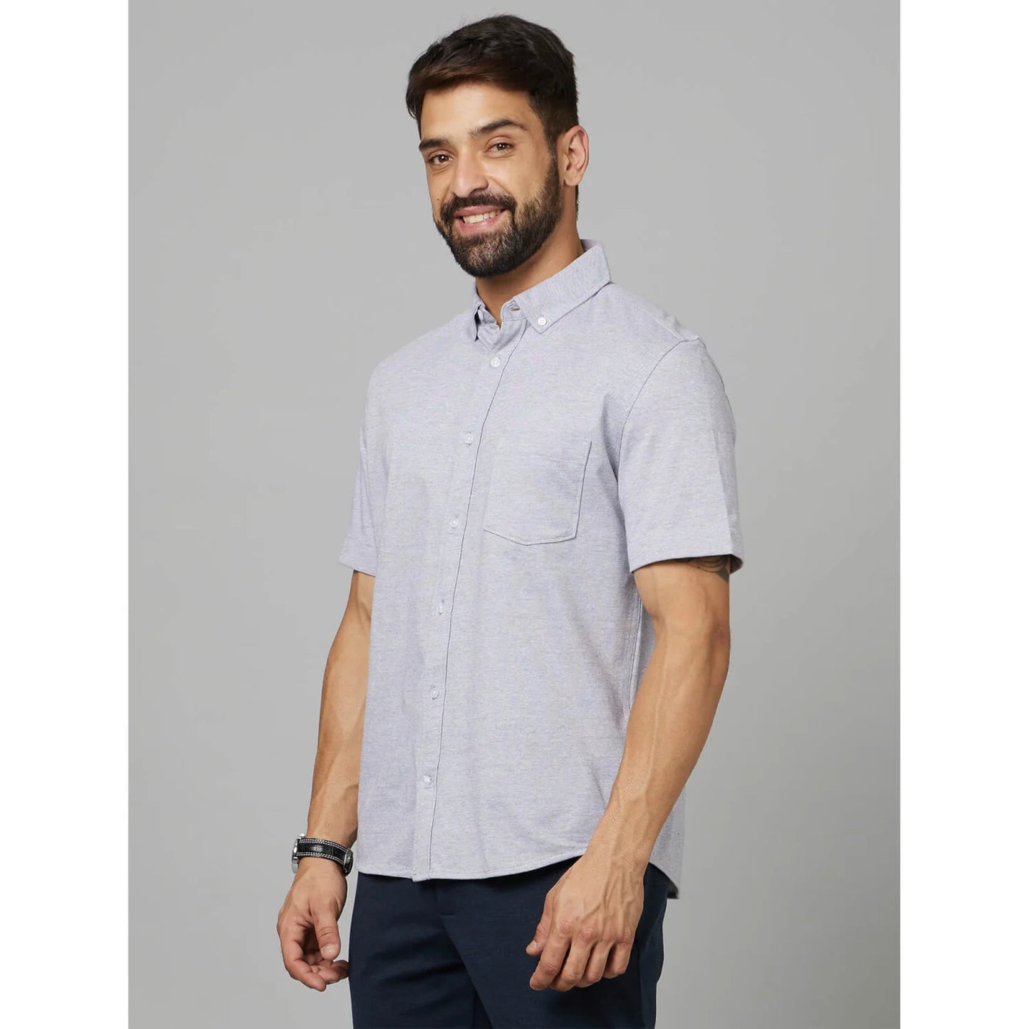 Discover the Celio Men's Light-Blue Knit Shirt in Barik Light Blue. Crafted from comfortable cotton, this half-sleeve shirt is perfect for casual occasions. Disclaimer: All other items in the image are only for display purposes and will not be a part of the delivery content. Product colour may slightly vary due to photographic lighting sources. Country of Origin - India.