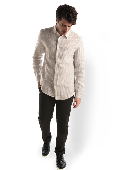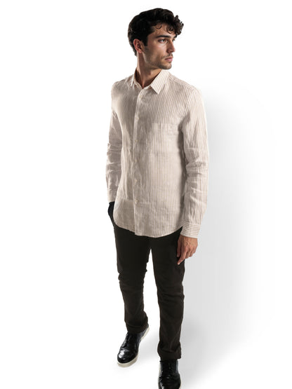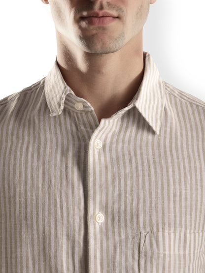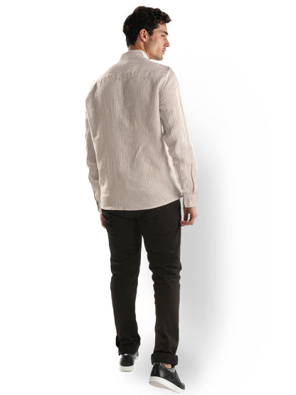 Celio* Striped Regular Fit Linen Light Blue Shirt