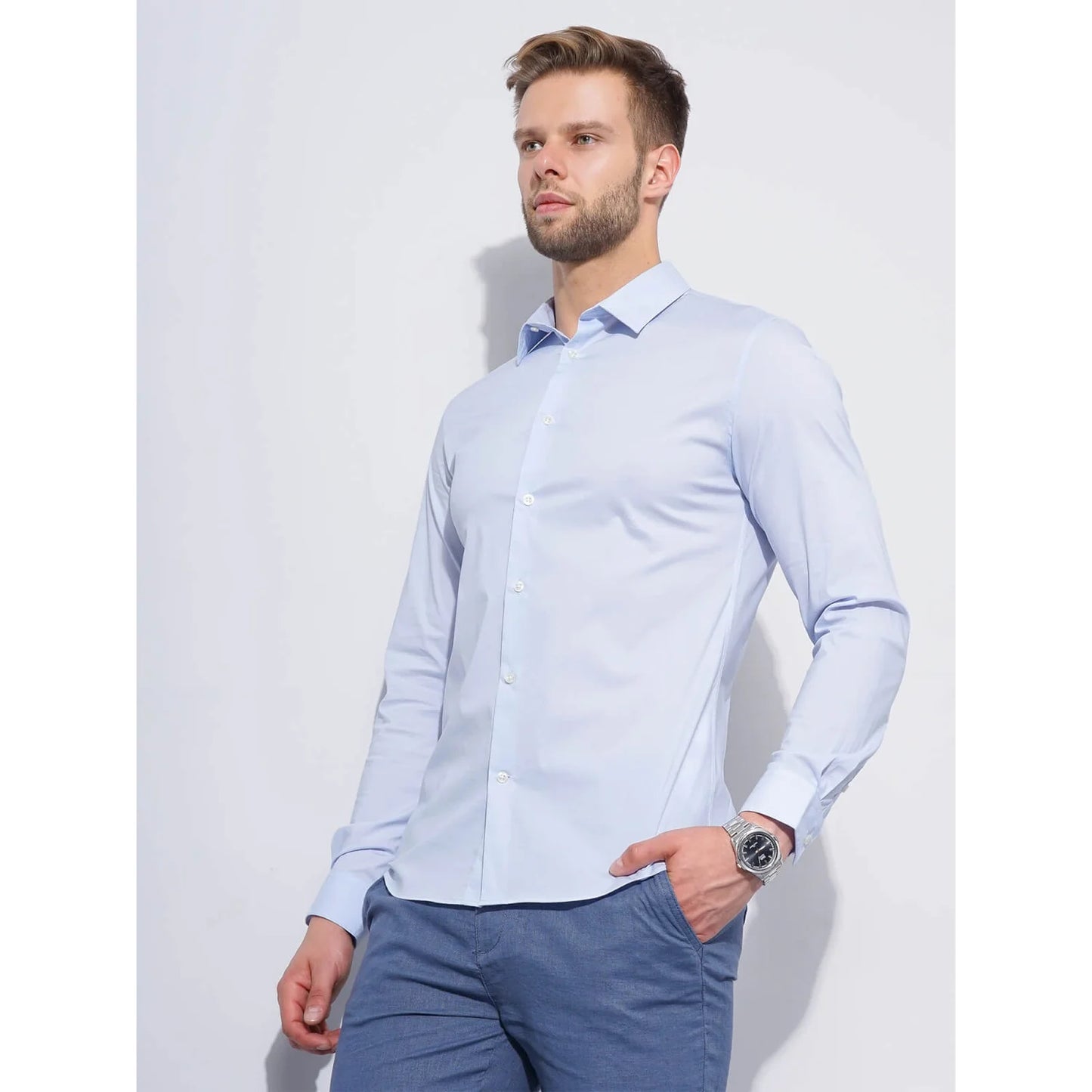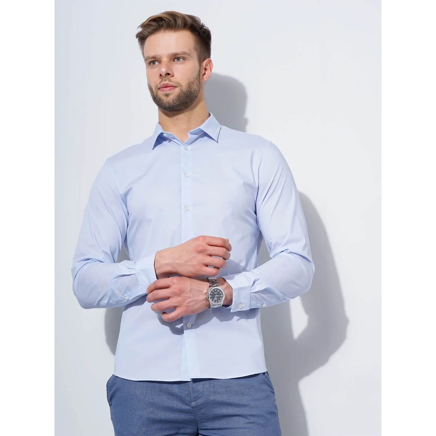 Celio* Solid Regular Fit Workwear Light Blue Shirts