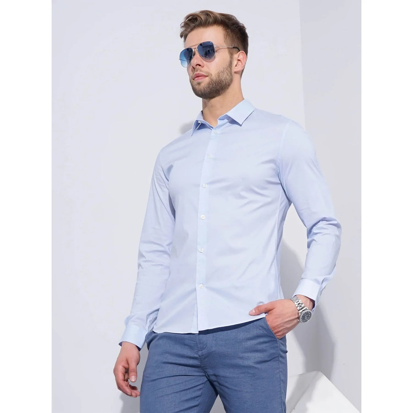 Elevate your casual wardrobe with the Celio Light Blue Formal Shirt. Crafted from a cotton blend, it features long sleeves and a stylish light blue hue, perfect for any occasion. Disclaimer: All other items in the image are only for display purposes and will not be a part of the delivery content. Product colour may slightly vary due to photographic lighting sources. Country of Origin - India. MASANTAL7