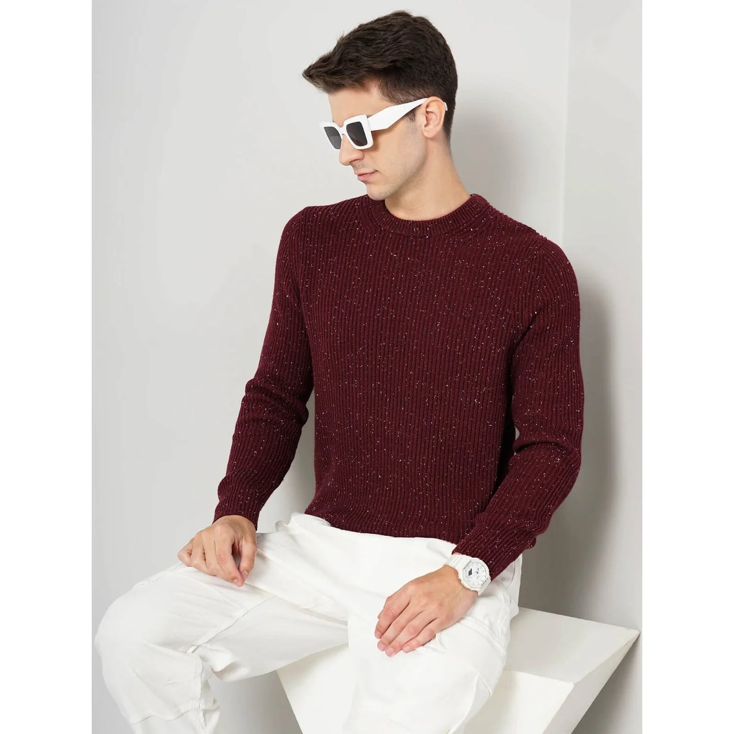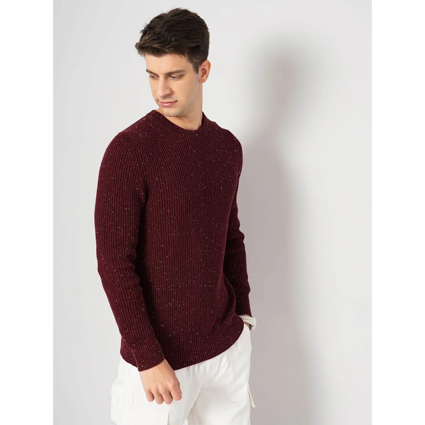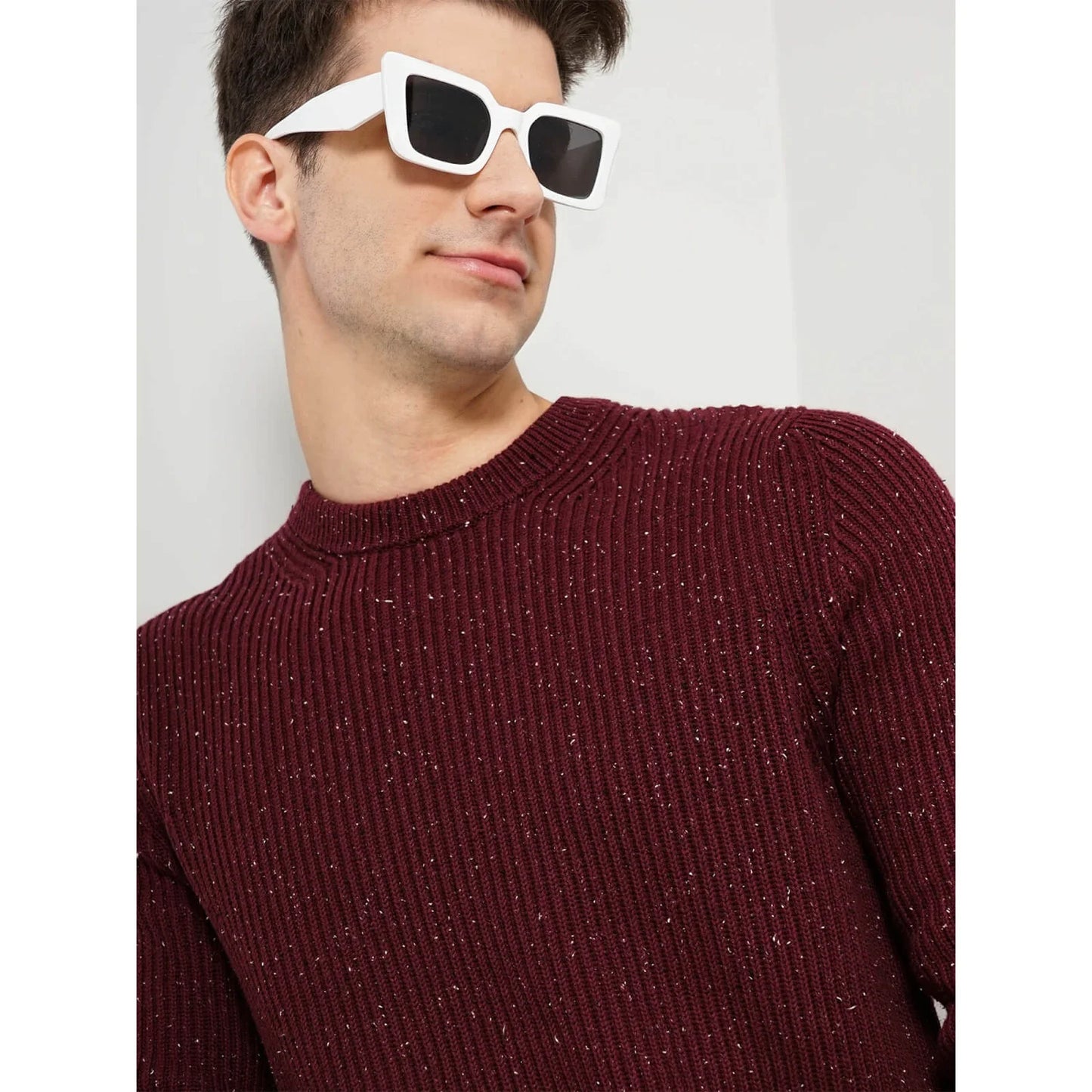 Celio* Textured Regular Fit Cotton-Blend Maroon Sweater