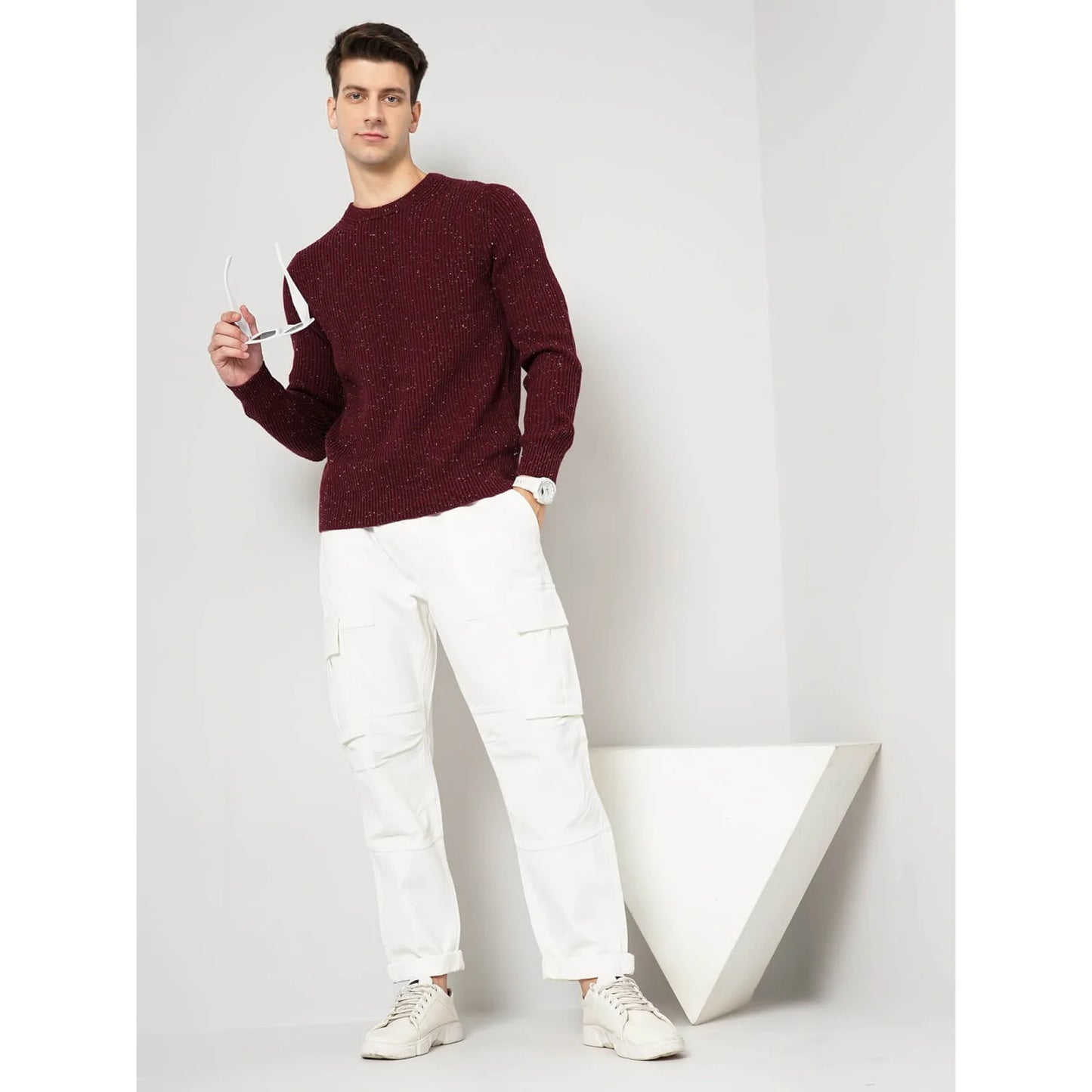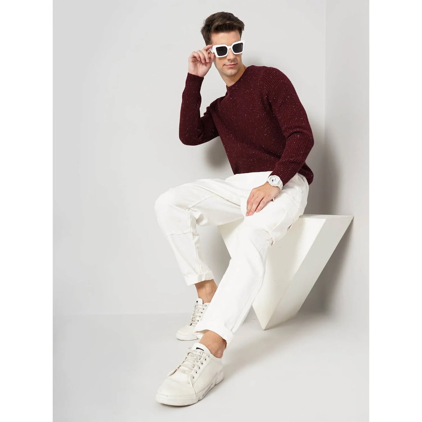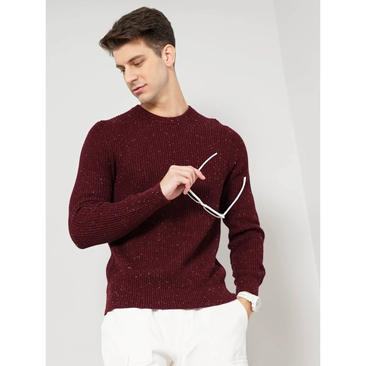 Celio* Textured Regular Fit Cotton-Blend Maroon Sweater