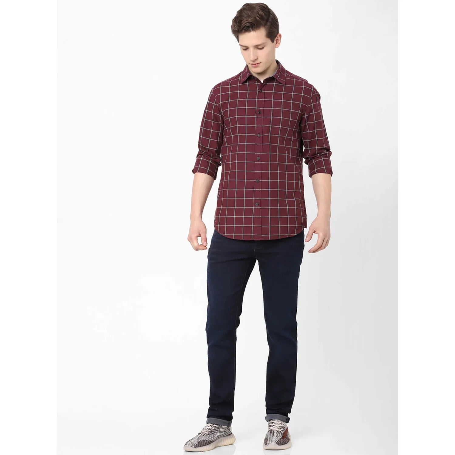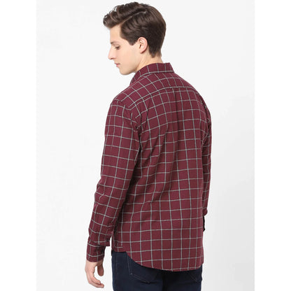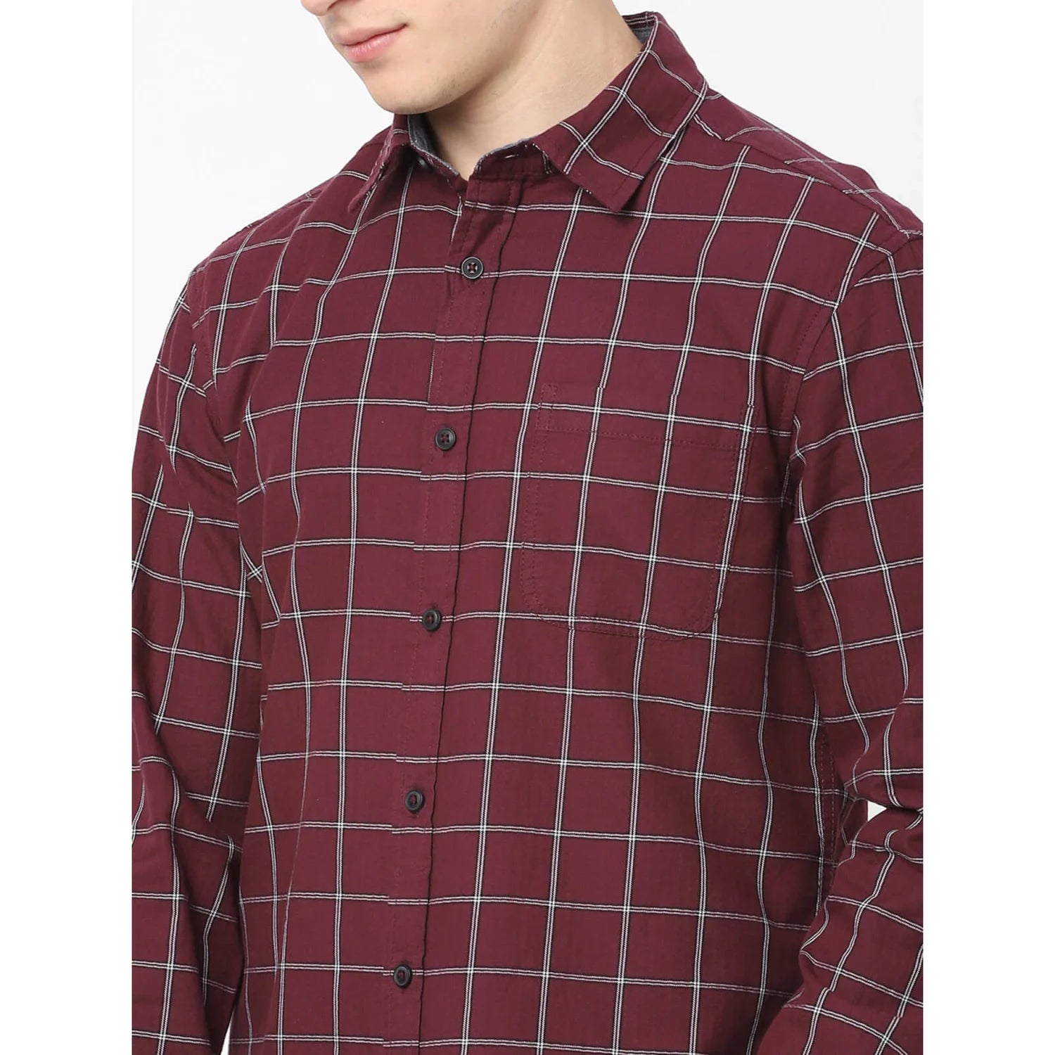 Celio* Checked Regular Fit Cotton Maroon Shirt