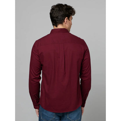 Celio* Solid Regular Fit Cotton Maroon Shirt
