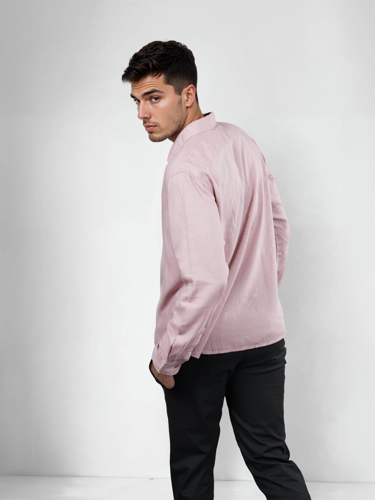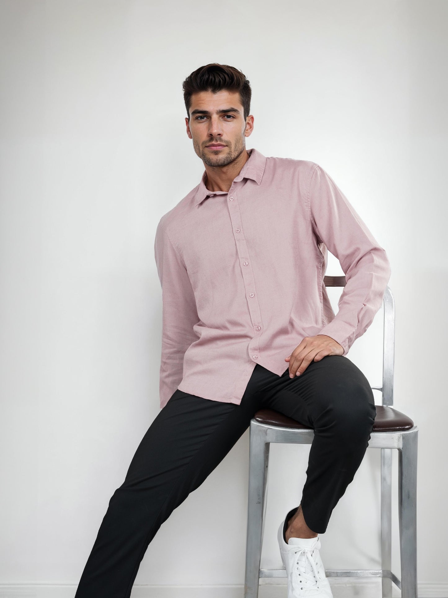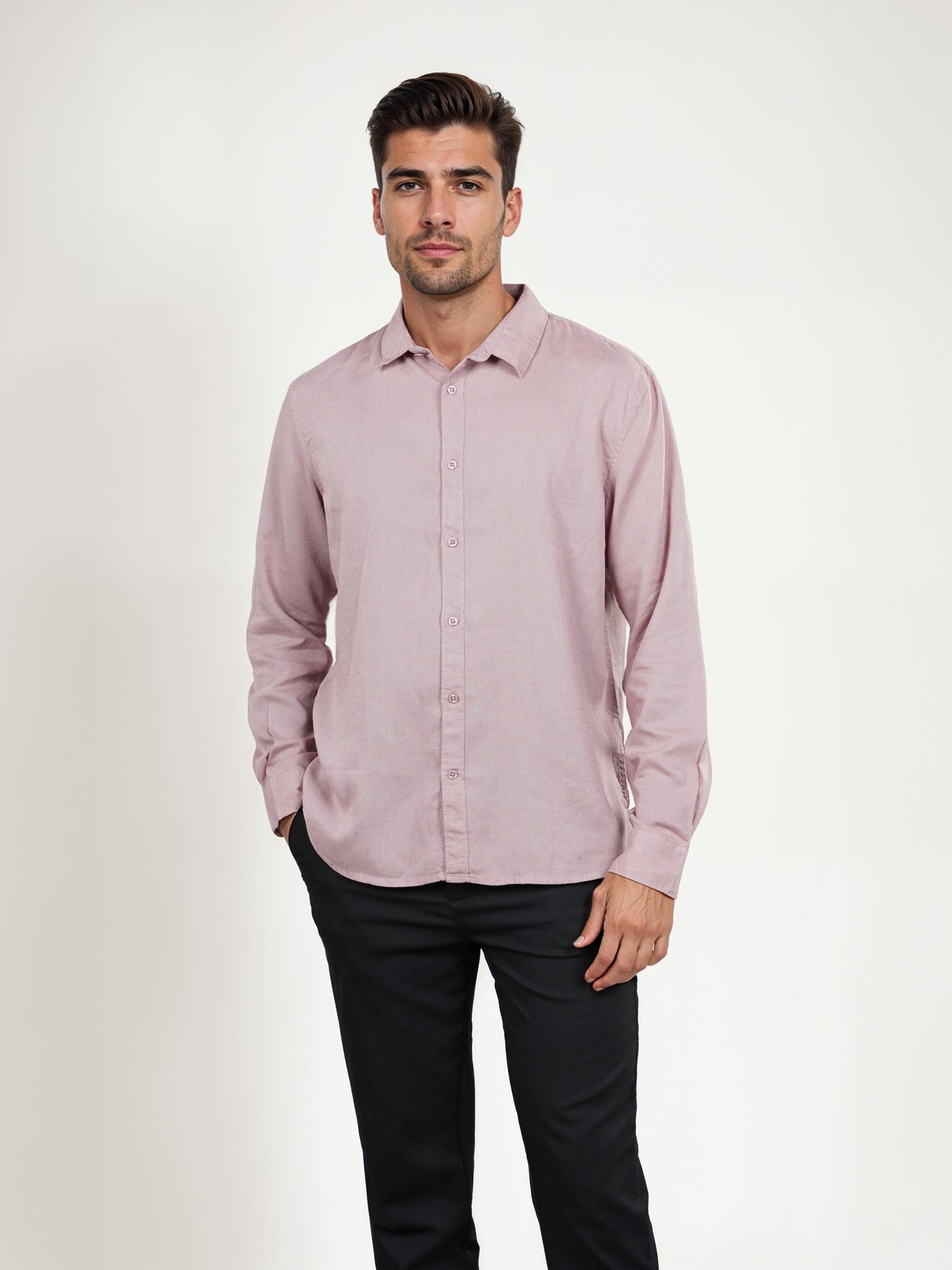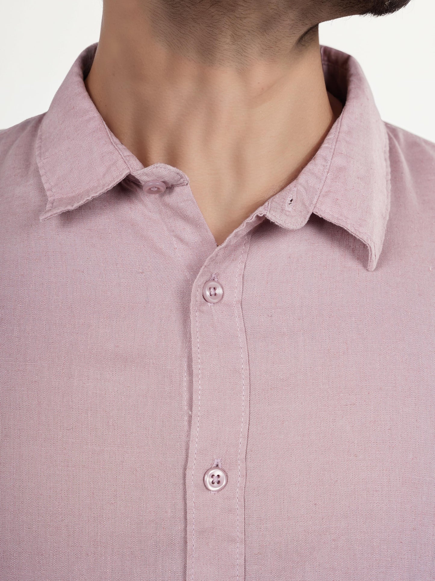 Celio* Solid Regular Fit Linen Mauve Shirt
