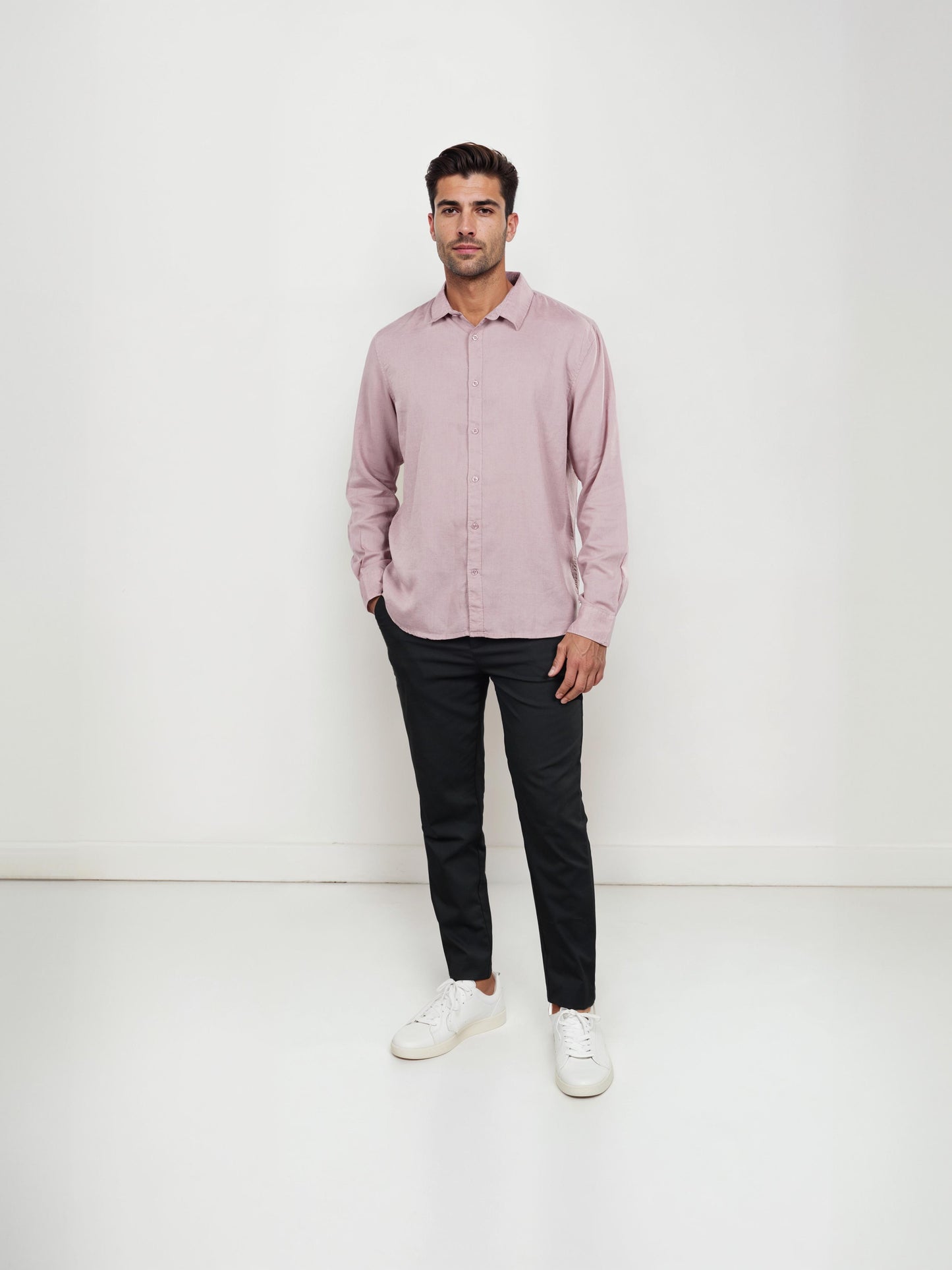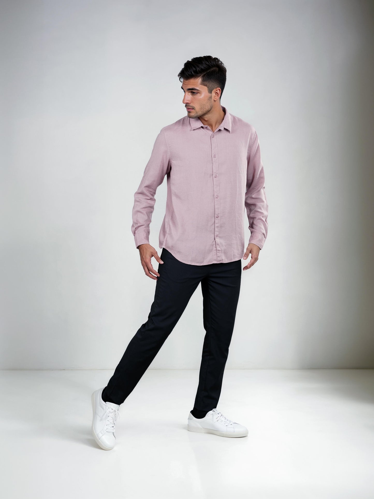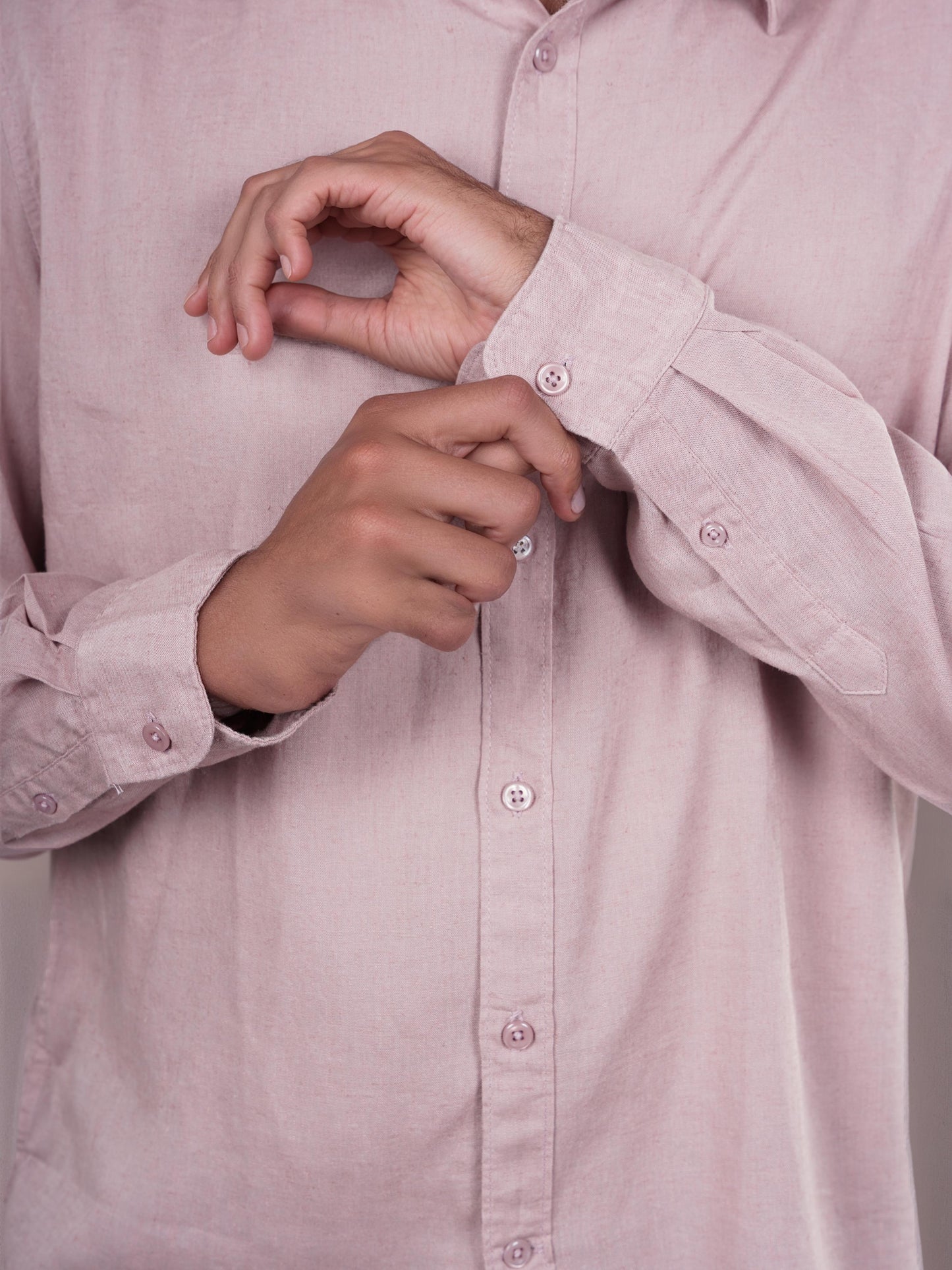 Elevate your casual wardrobe with the Celio Men Mauve Linen Shirt. This stylish regular fit shirt features a spread collar and long sleeves, perfect for a laid-back yet refined look. Disclaimer: All other items in the image are only for display purposes and will not be a part of the delivery content. Product colour may slightly vary due to photographic lighting sources. Country of Origin - India.