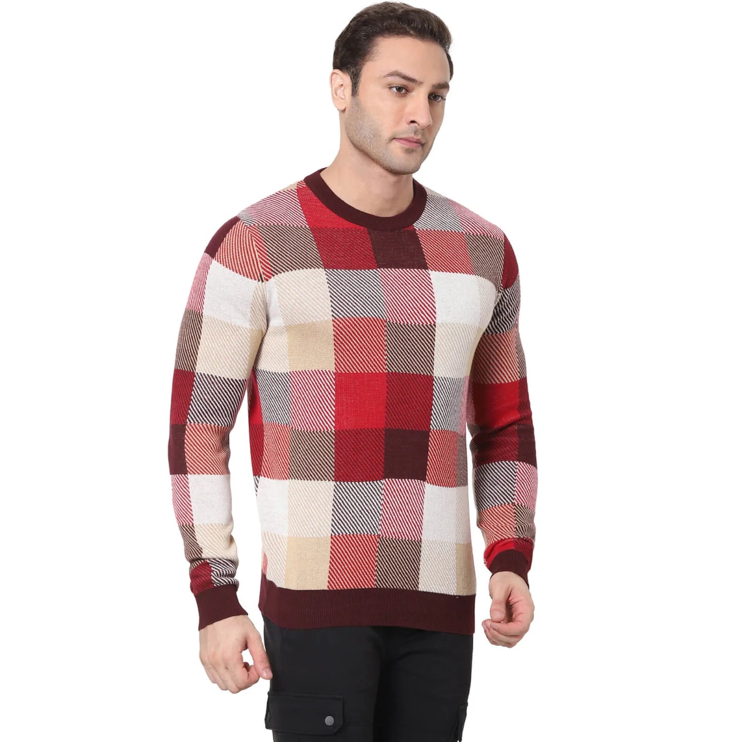 Celio* Checked Regular Fit Cotton Multi Sweater