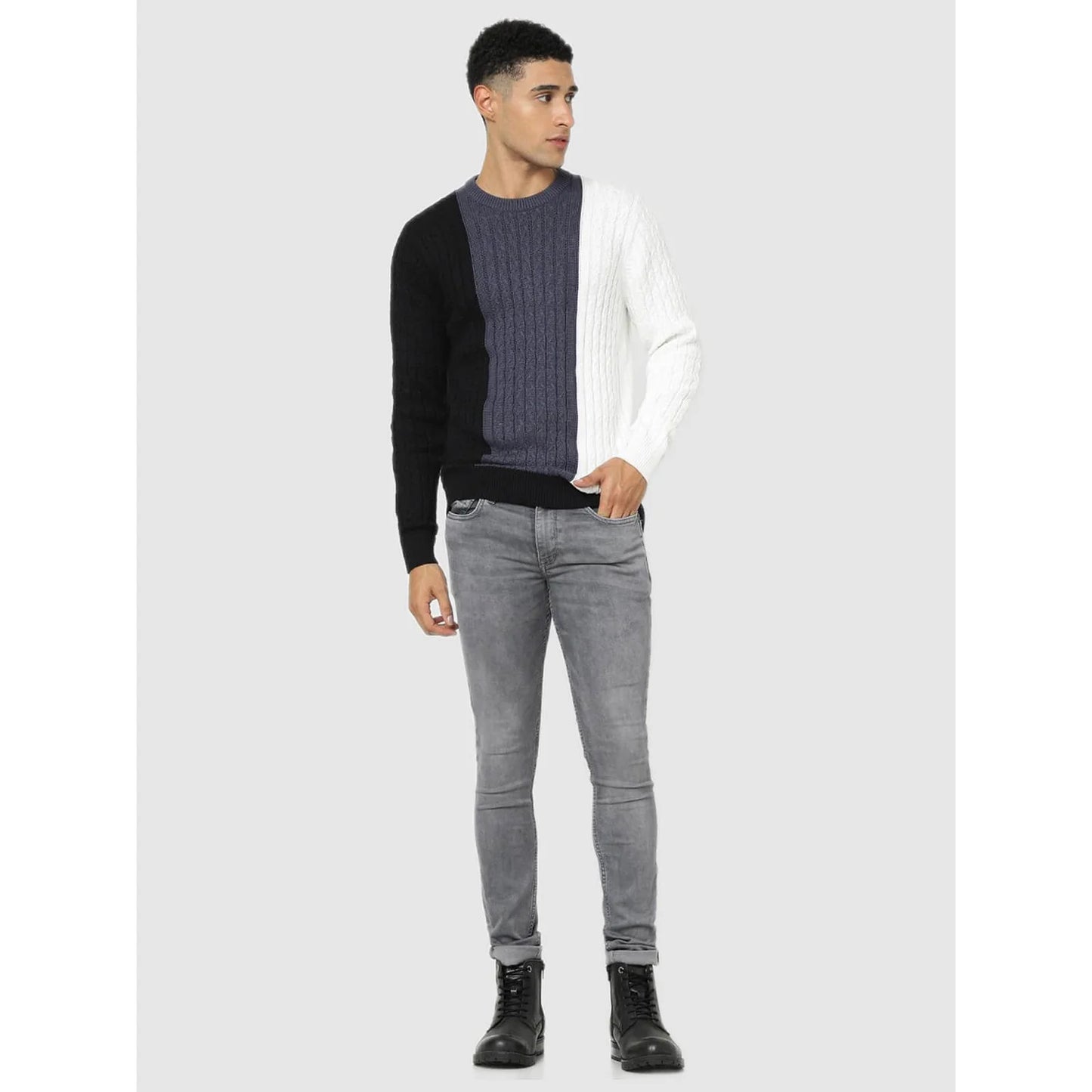 Celio* Colourblock Regular Fit Cotton Multi Sweater