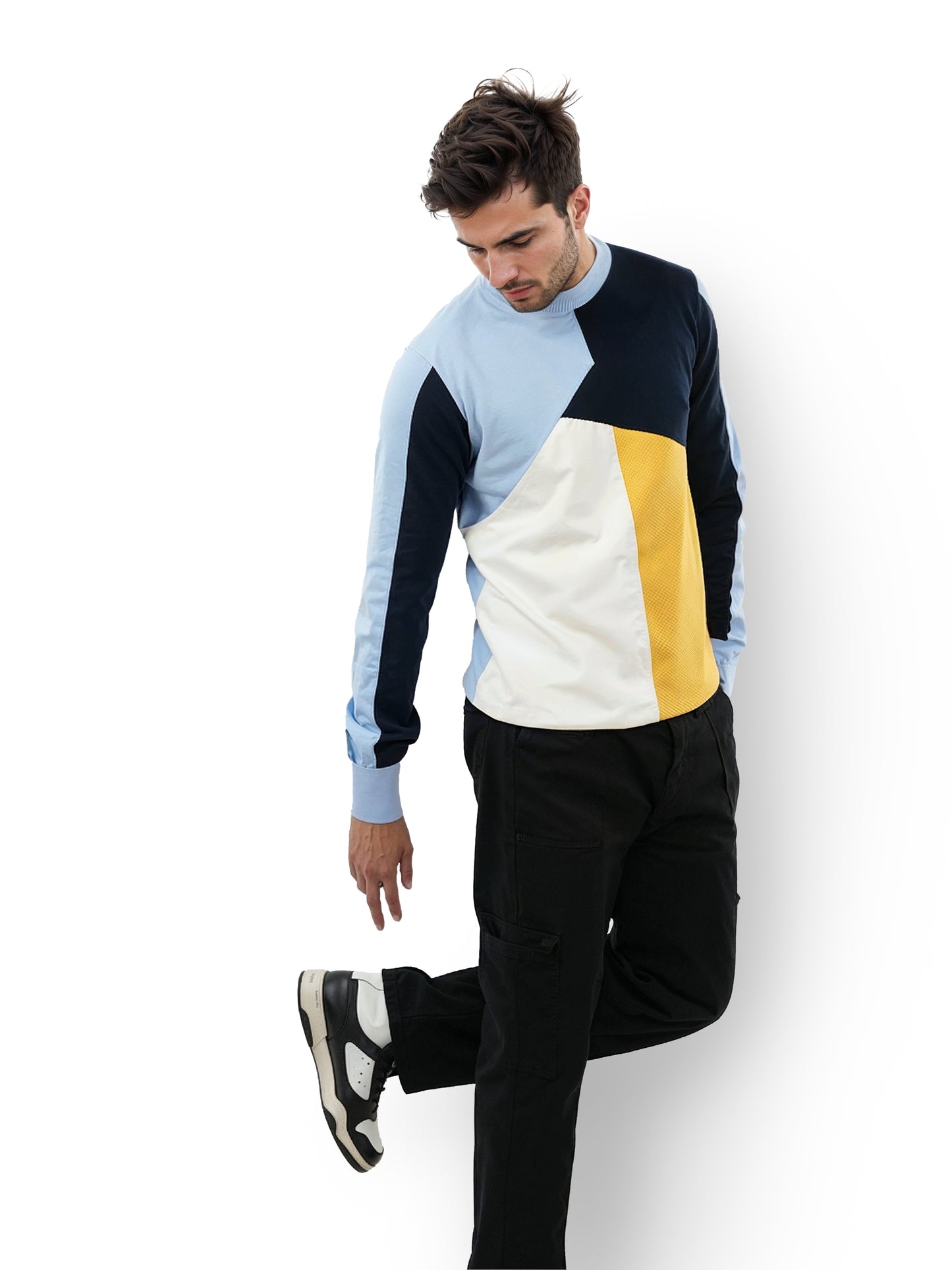 Celio* Colourblock Regular Fit Cotton Multi Sweater