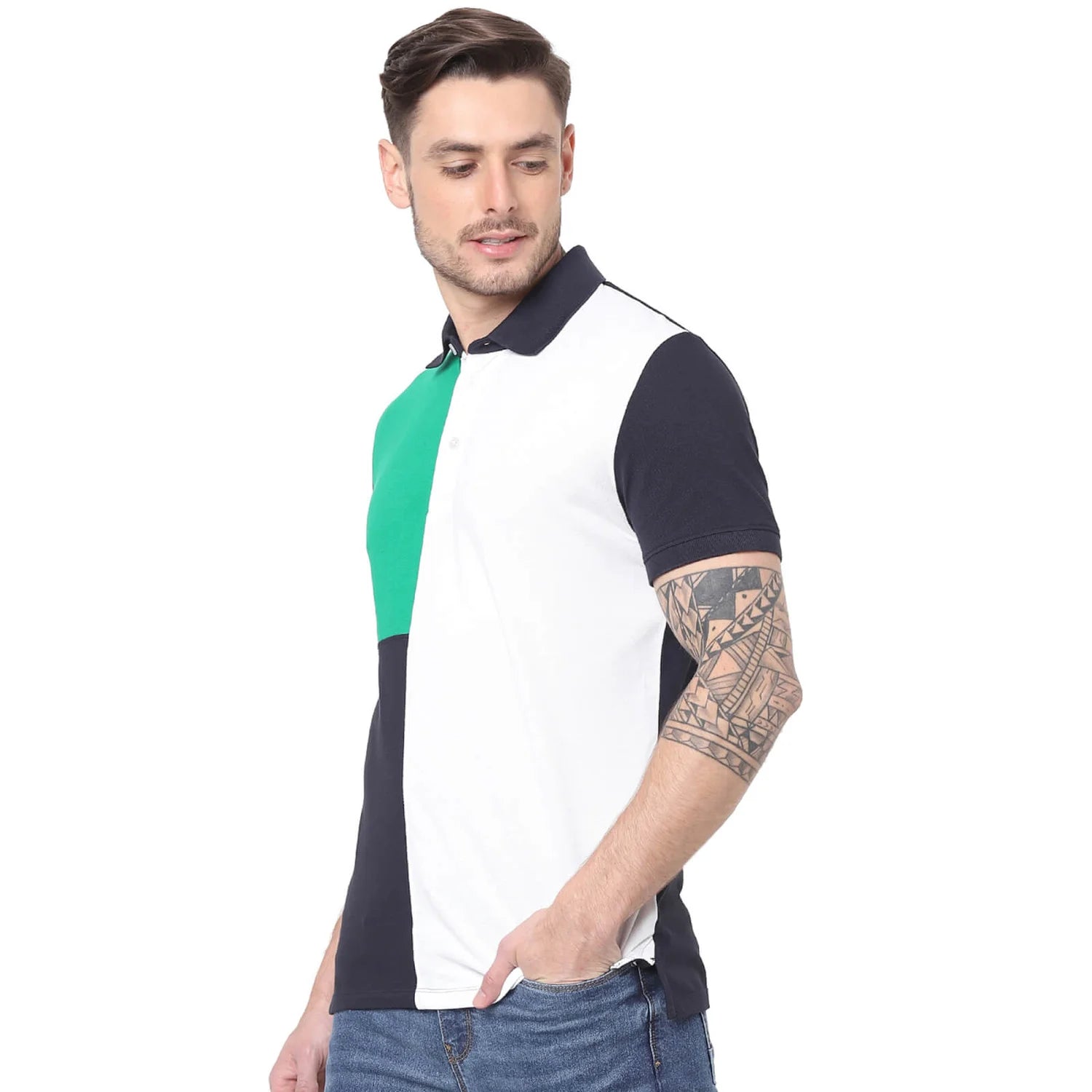 Shop the stylish Celio Men's Polo T-Shirt in Multi. This casual cotton tee for men features short sleeves and is perfect for everyday wear. Disclaimer: All other items in the image are only for display purposes and will not be a part of the delivery content. Product colour may slightly vary due to photographic lighting sources. Country of Origin - India.